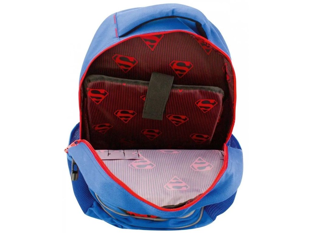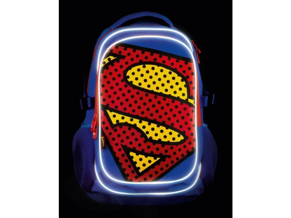 Studentský batoh s výrazným logem Superman na přední části. Batoh je pro žáky 2. stupně ZŠ. Anatomicky tvarovaná záda polstrované ramenní popruhy zajistí příjemné nošení. Nechybí kapsa na notebook a nezbytné reflexní prvky. Součástí je i pláštěnkové pončo.