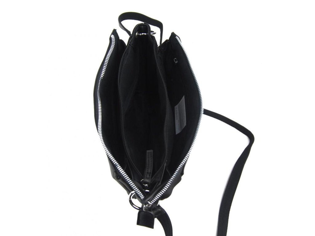 Kabelka se otevírá masivním kovovým zipem, pod kterým jsou připravené tři samostatné oddíly. Prostřední z nich je navíc také uzavíratelný na zip.