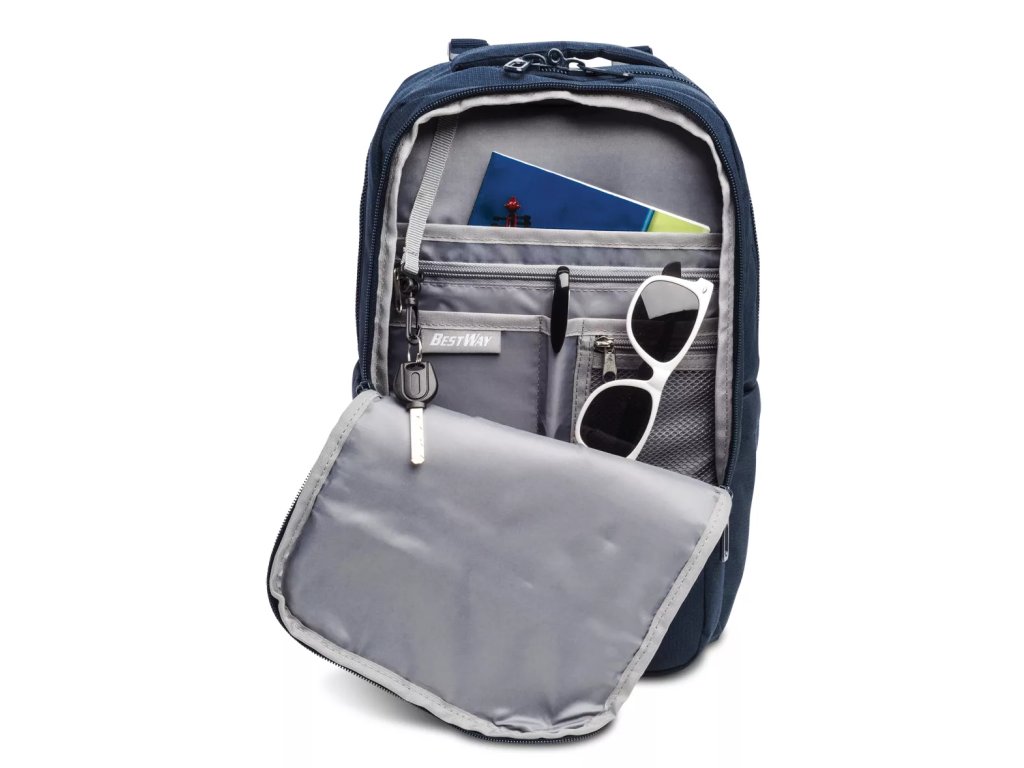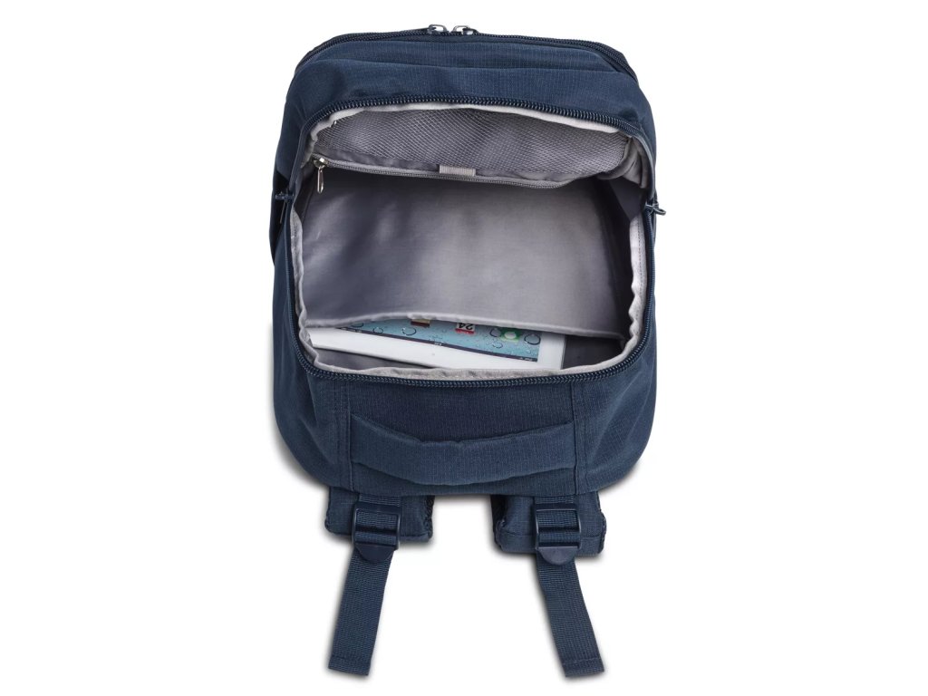 Batoh má nastavitelné výztuhy a pásek, který vám umožní připevnit batoh k výsuvné rukojeti kufru, což vám usnadní cestování. Textilní rukojeť pro přenášení batohu. Batoh má velký hlavní kapsu a přední kapsu. Batoh se otevírá zipem.