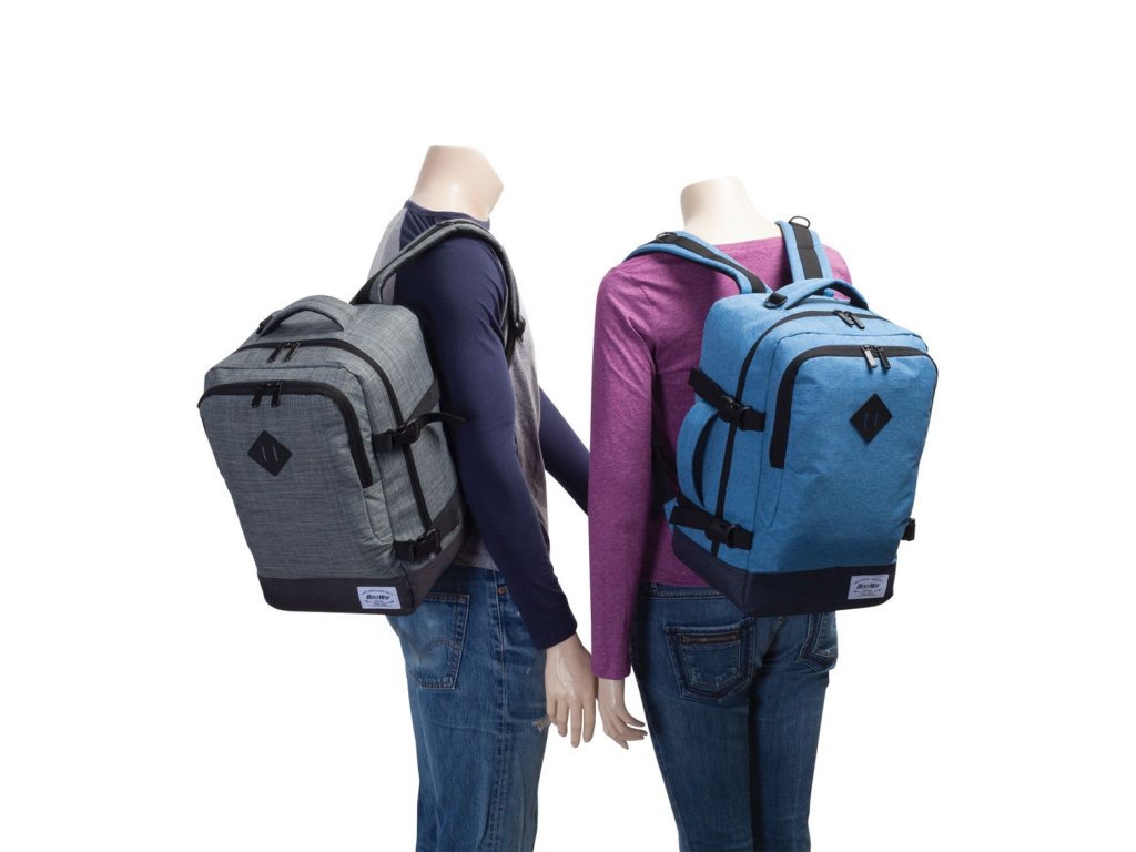 Batoh - taška, vyroben z vysoce kvalitní odolné látky POLYESTER 600D. Díky svým rozměrům dokonale vyhovuje současným požadavkům RYANAIR jako volné příruční zavazadlo.