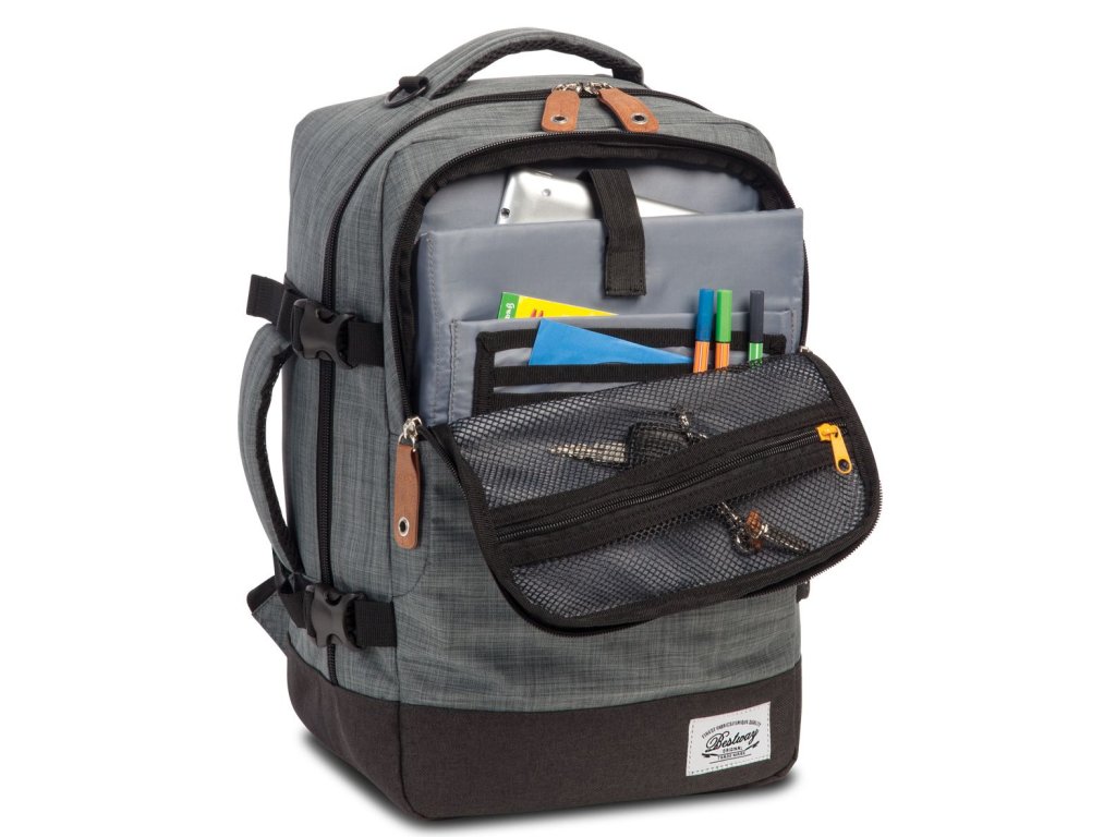 Batoh má nastavitelné výztuhy a pásek, který vám umožní připevnit batoh k výsuvné rukojeti kufru, což vám usnadní cestování. Textilní rukojeť pro přenášení batohu. Batoh má velký hlavní kapsu a přední kapsu. Batoh se otevírá zipem.