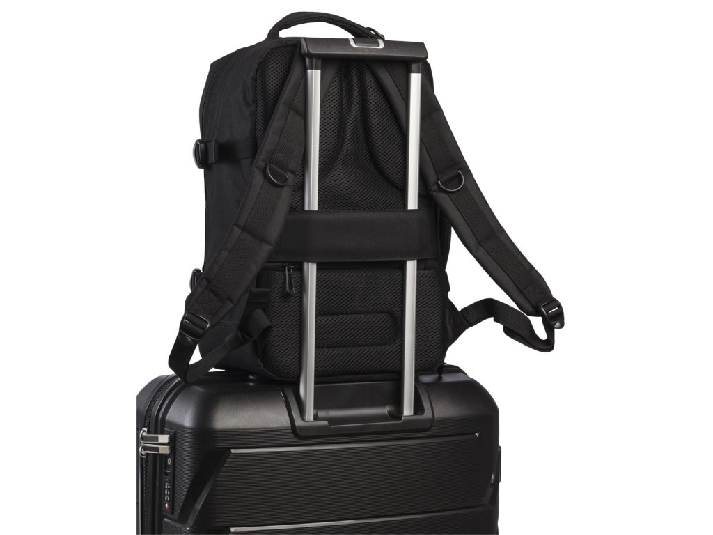Batoh má nastavitelné výztuhy a pásek, který vám umožní připevnit batoh k výsuvné rukojeti kufru, což vám usnadní cestování. Textilní rukojeť pro přenášení batohu. Batoh má velký hlavní kapsu a přední kapsu. Batoh se otevírá zipem.