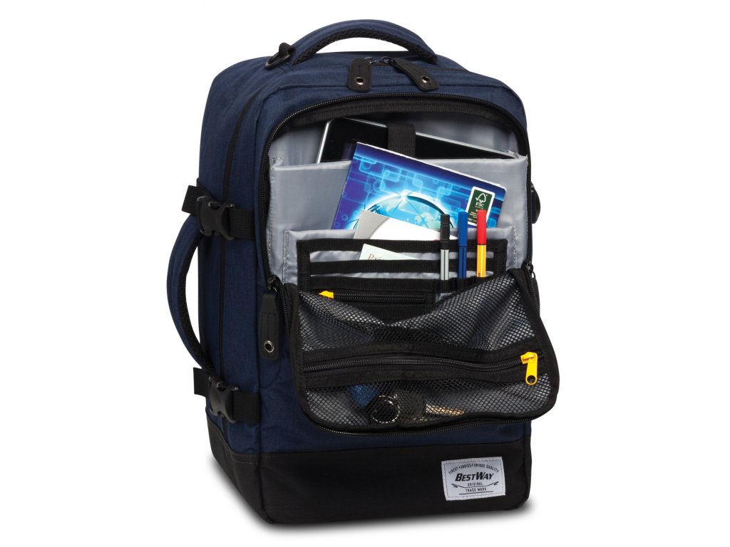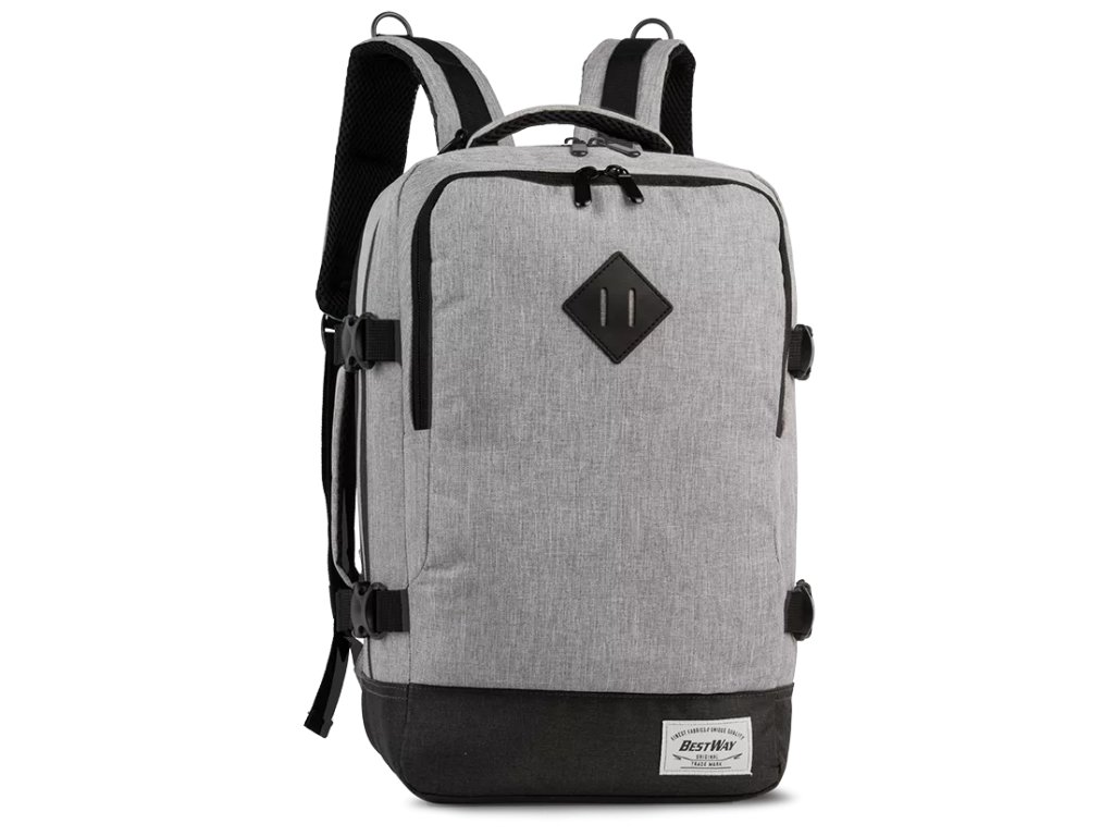 Batoh - taška, vyroben z vysoce kvalitní odolné látky POLYESTER 600D. Díky svým rozměrům dokonale vyhovuje současným požadavkům RYANAIR jako volné příruční zavazadlo.