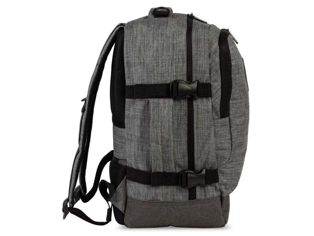 Batoh má nastavitelné výztuhy a pásek, který vám umožní připevnit batoh k výsuvné rukojeti kufru, což vám usnadní cestování. Textilní rukojeť pro přenášení batohu. Batoh má velký hlavní kapsu a přední kapsu. Batoh se otevírá zipem.