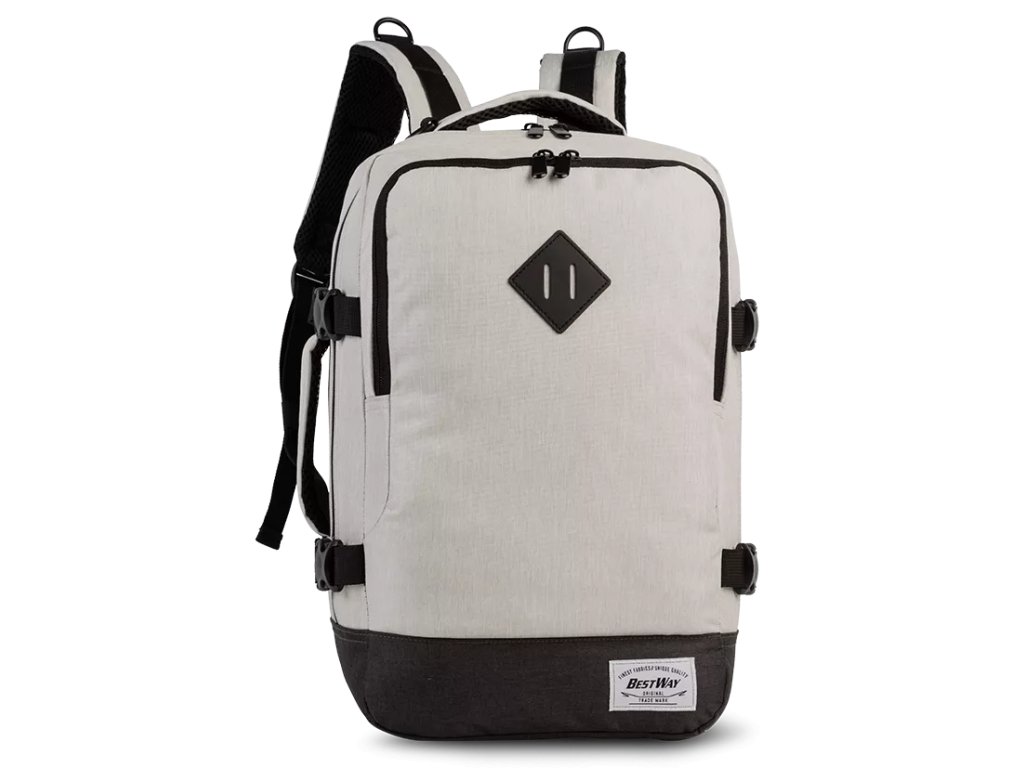 Batoh - taška, vyroben z vysoce kvalitní odolné látky POLYESTER 600D. Díky svým rozměrům dokonale vyhovuje současným požadavkům RYANAIR jako volné příruční zavazadlo.