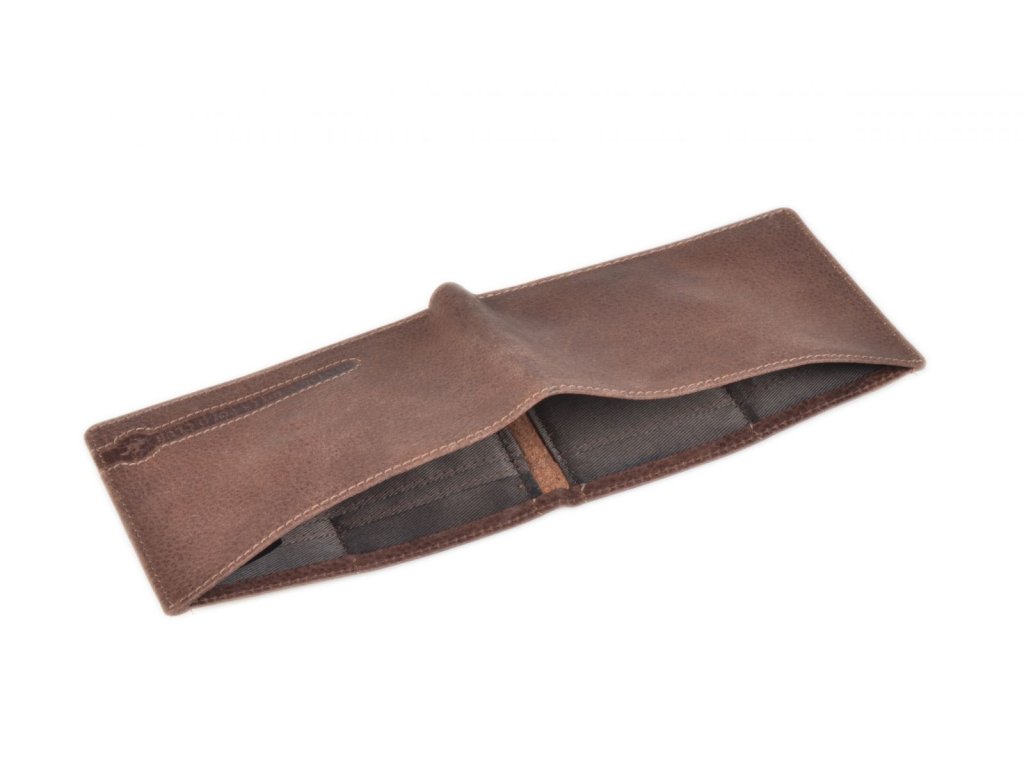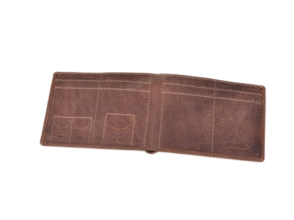 Pánská celokožená dokladovka z kolekce značky Beverly Hills Polo Club v tabákové barvě linie Tucson, přihrádka na bankovky, kapsa na doklady a organizér na platební karty, 2x sim karty 1x SD kartu.
