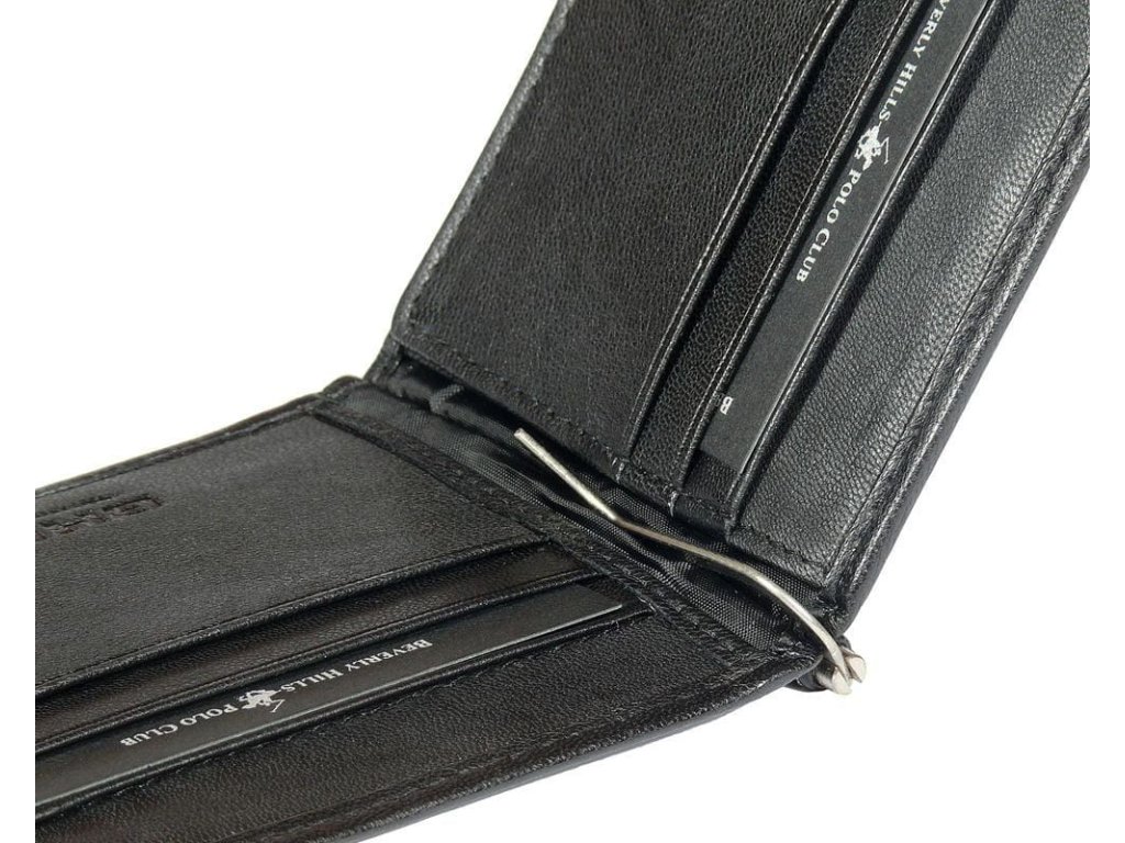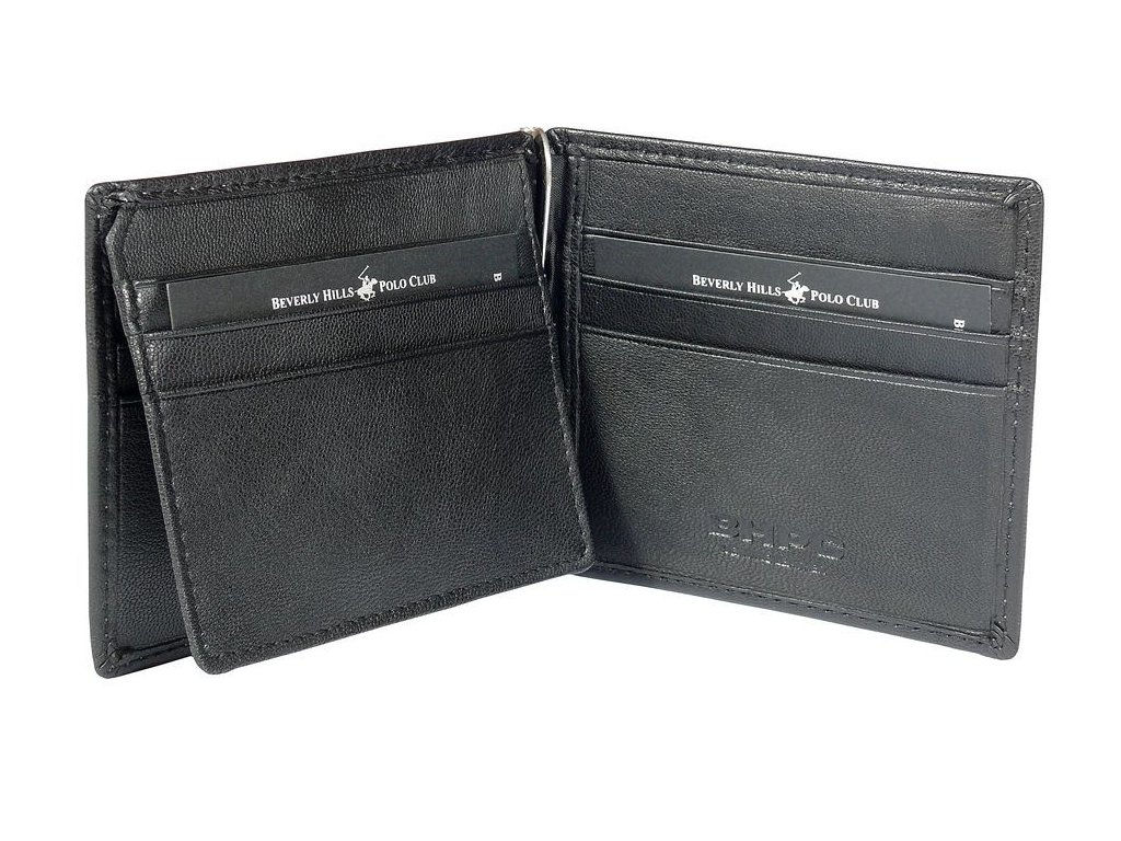 Pánská celokožená peněženka z kolekce značky beverly hills polo club v černé barvě série new york.Kovové pérko na bankovky.Kapsa na doklady a organizér na platební karty.