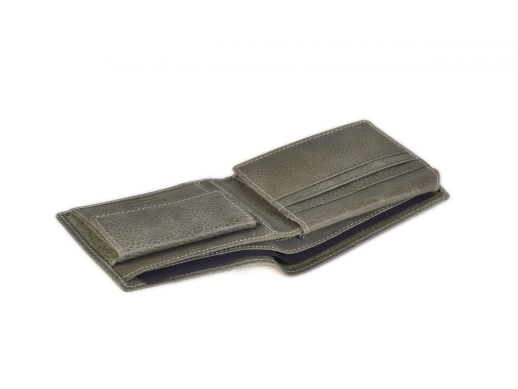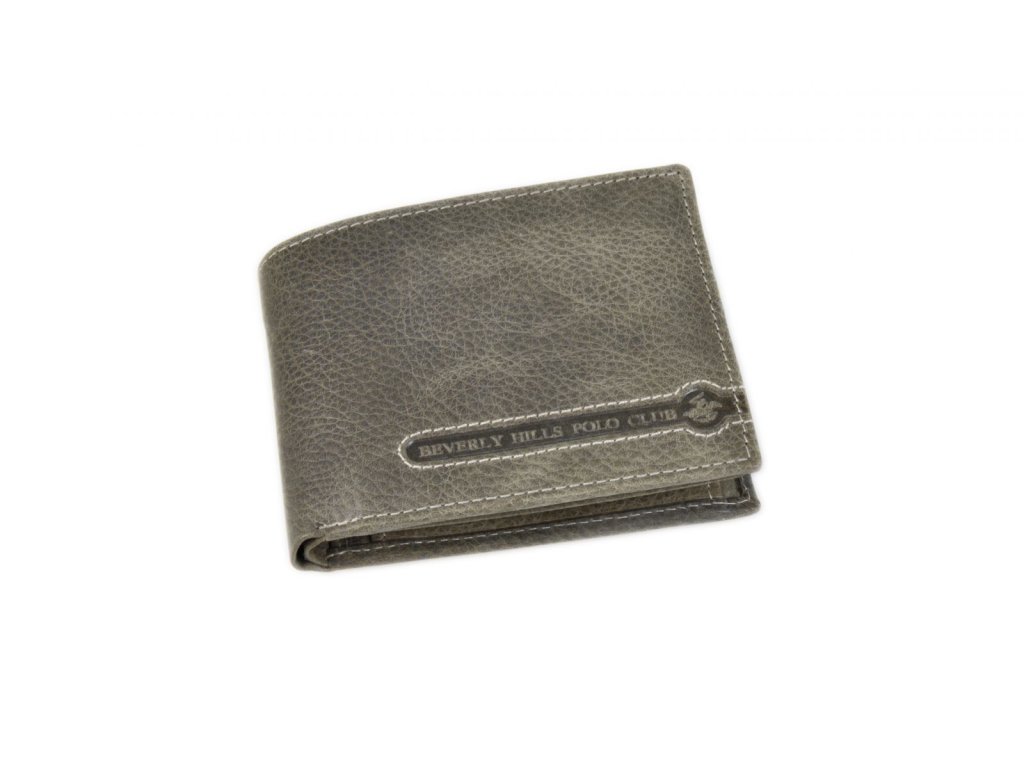 Pánská celokožená peněženka z kolekce značky Beverly Hills Polo Club v antracitové barvě linie Tucson, přihrádka na bankovky, kapsa na doklady a organizér na platební karty, kapsa na mince na patent.