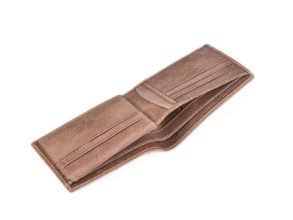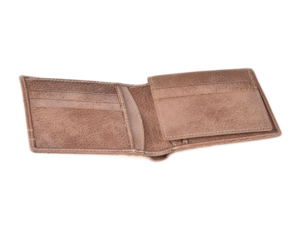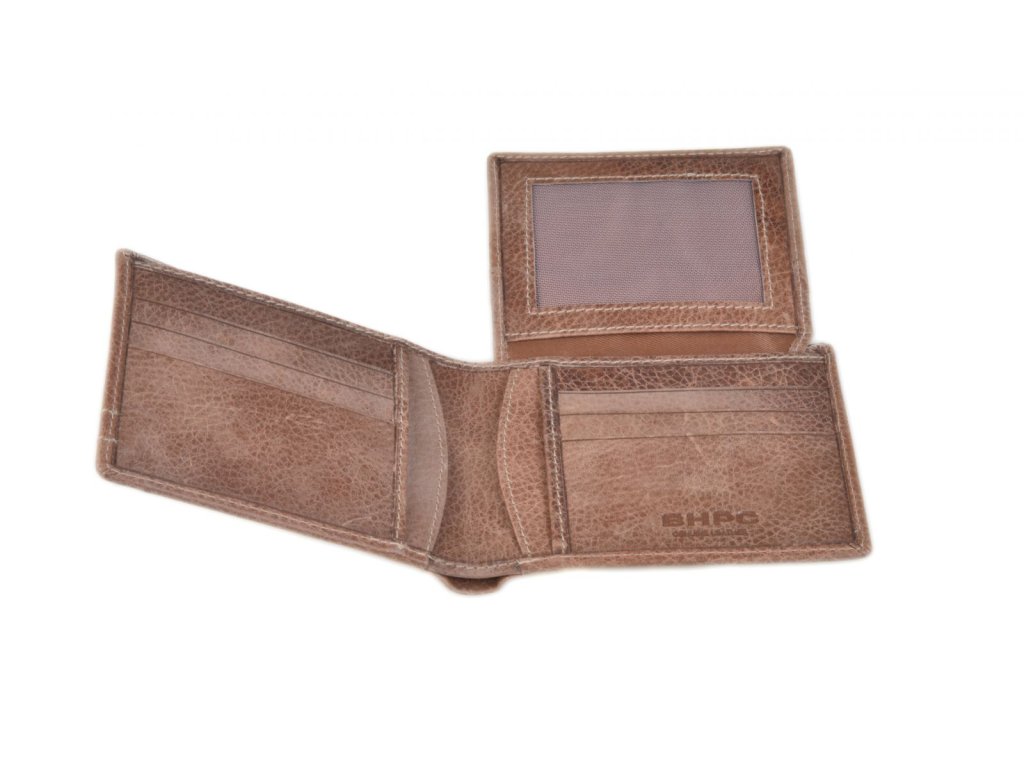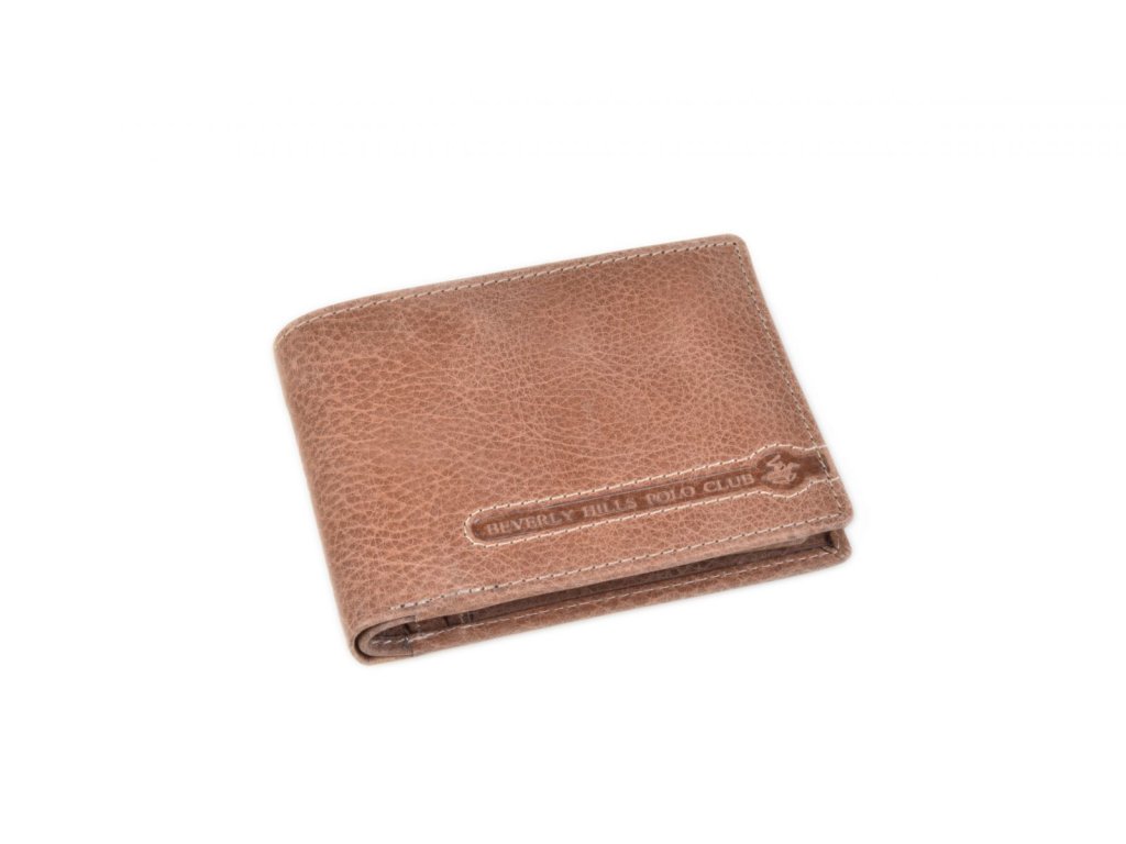 Pánská celokožená peněženka z kolekce značky Beverly Hills Polo Club v hnědé barvě linie Tucson, přihrádka na bankovky, kapsa na doklady a organizér na platební karty.