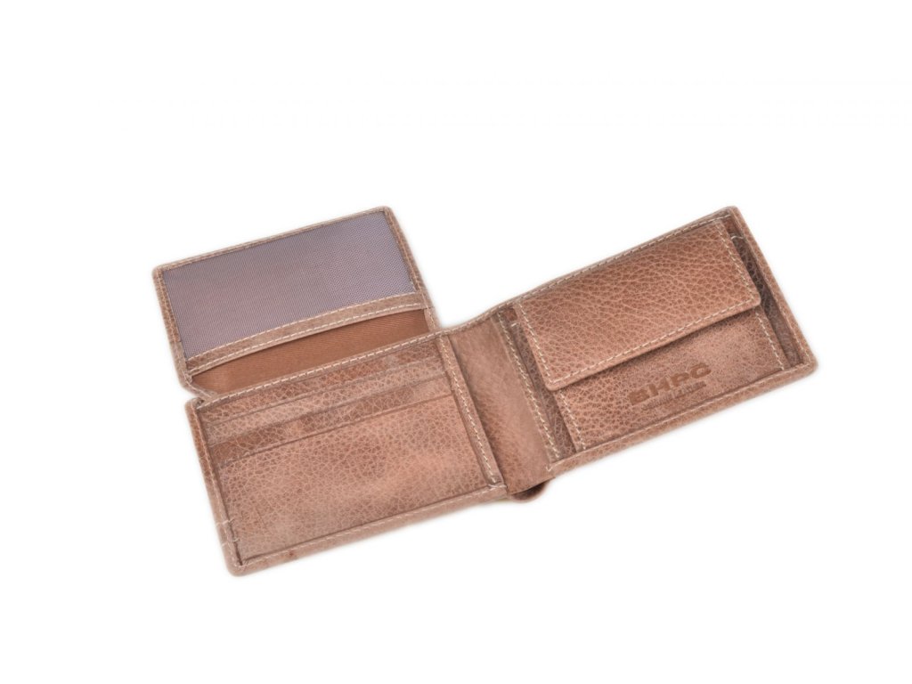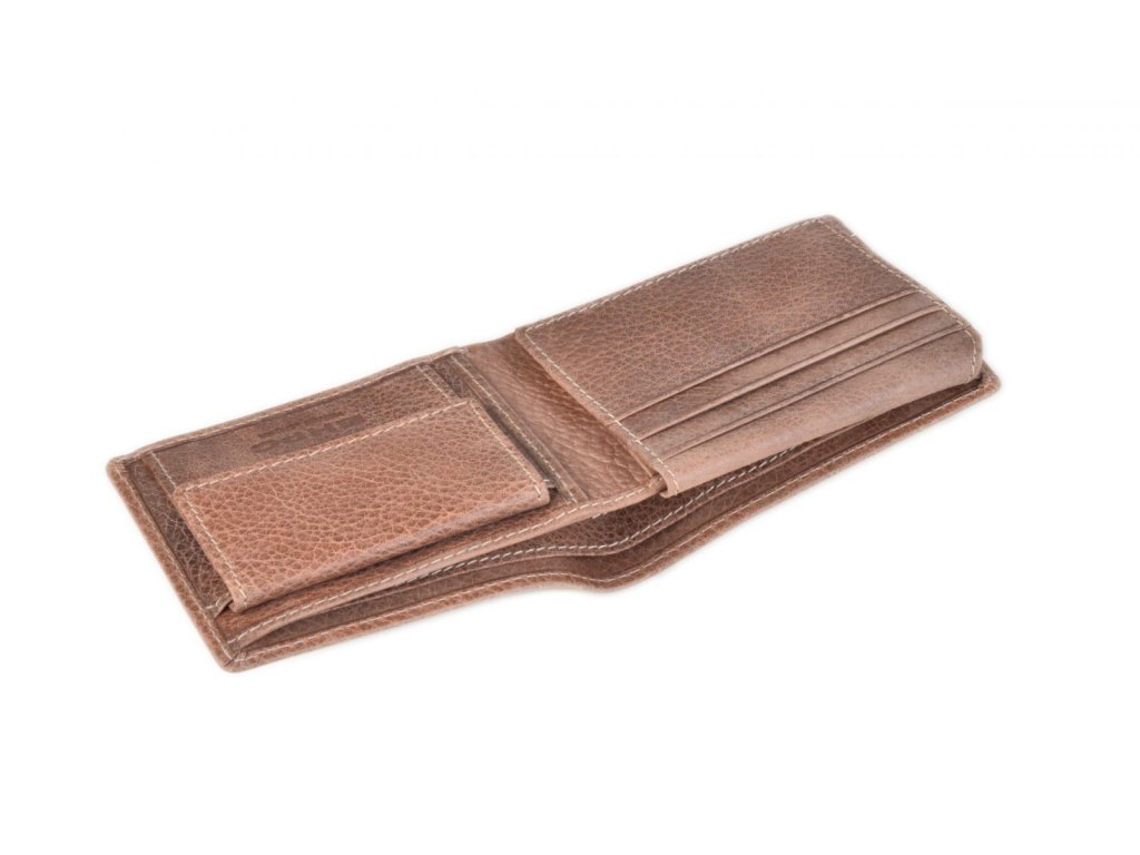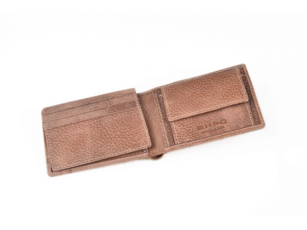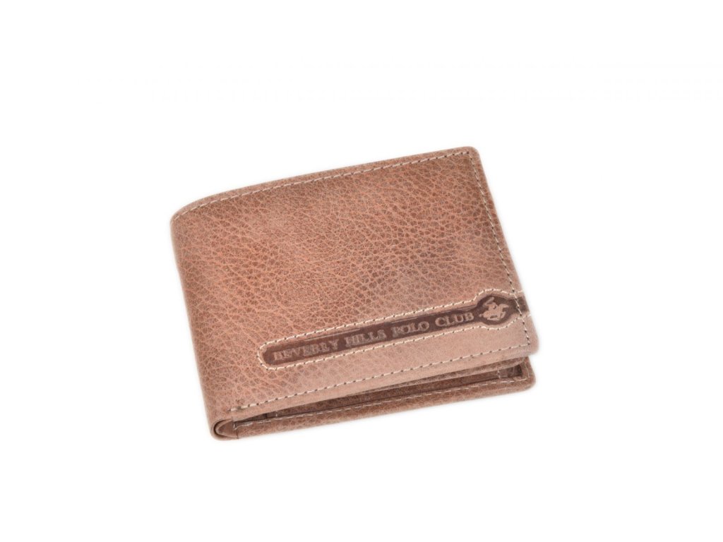 Pánská celokožená peněženka z kolekce značky Beverly Hills Polo Club v hnědé barvě linie Tucson, přihrádka na bankovky, kapsa na doklady a organizér na platební karty, kapsa na mince je na patent.