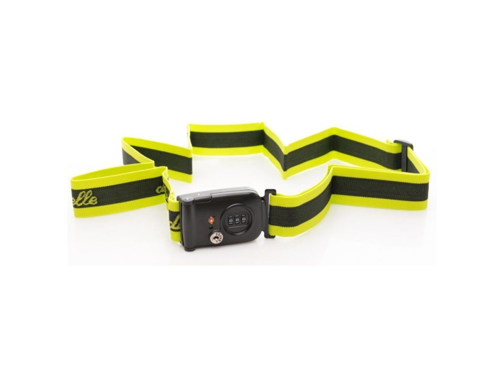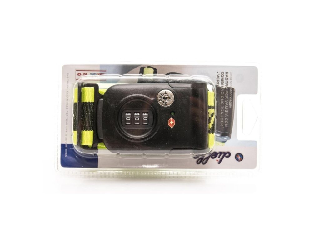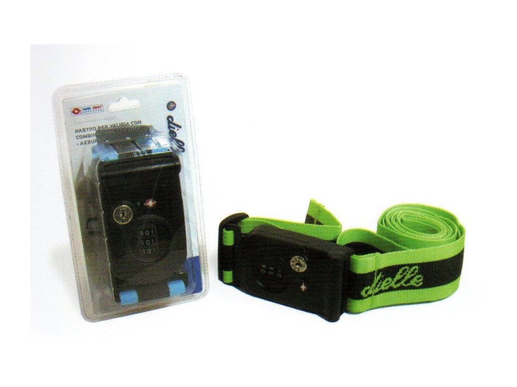 Zajištovací popruh na zavazadla italské značky dielle v zelené barvě s kombinačním zámkem TSA.
