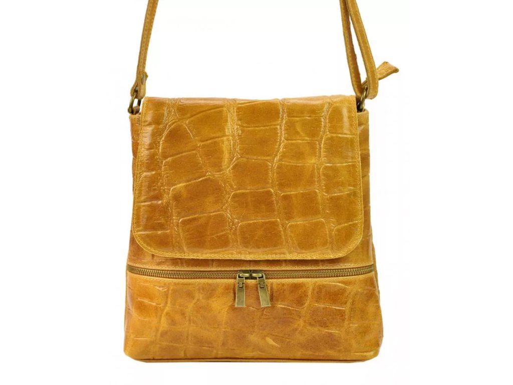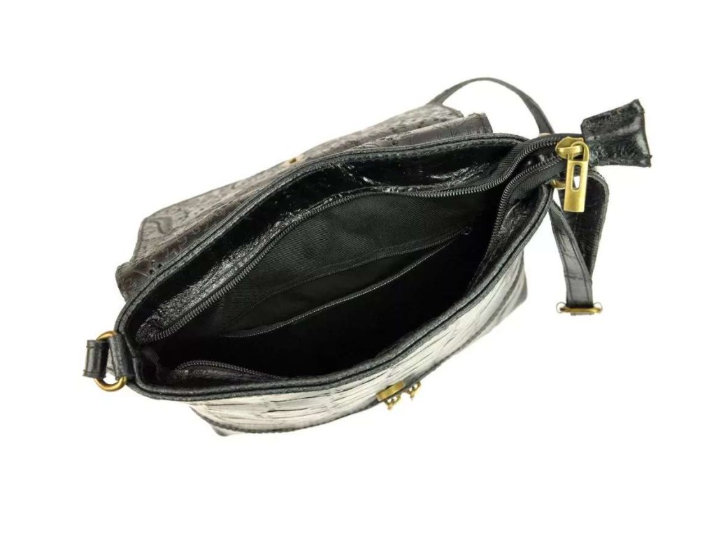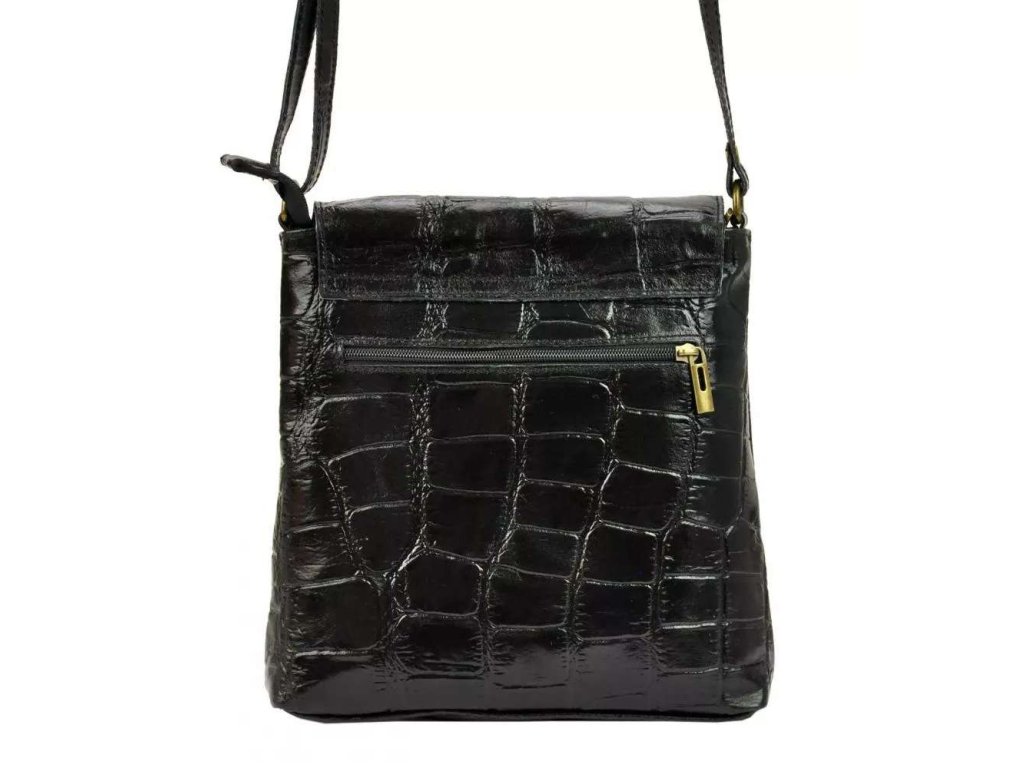 Středně velká až větší kožená crossbody kabelka s krokodýlím vzorem