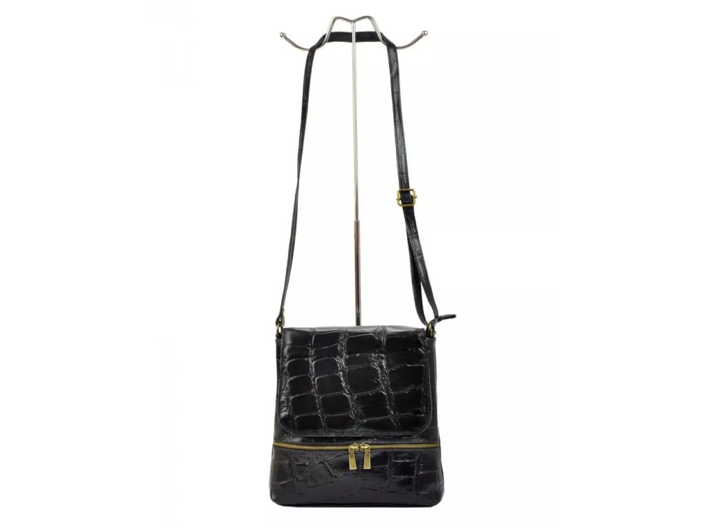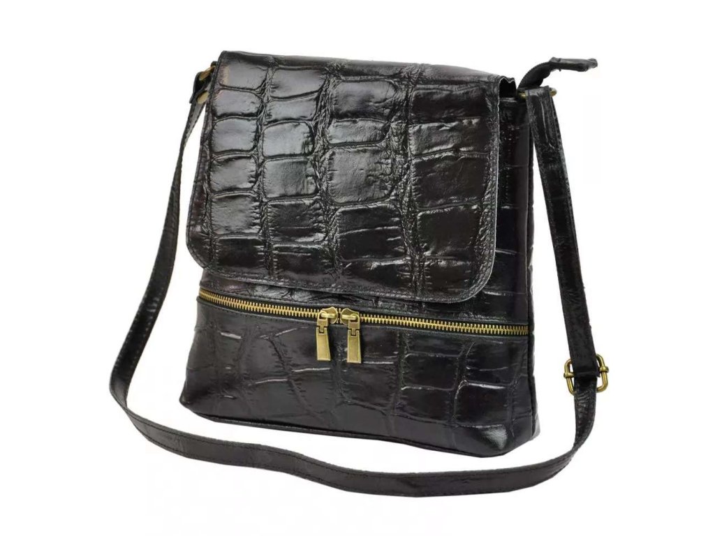 Středně velká až větší kožená crossbody kabelka s krokodýlím vzorem