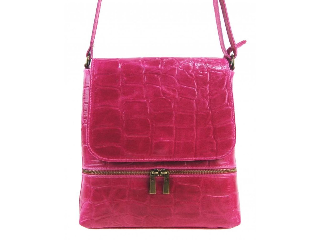 BORSE IN PELLE Kožená dámská crossbody kabelka v kroko designu fuchsiová růžová