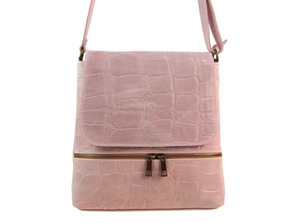 BORSE IN PELLE Kožená dámská crossbody kabelka v kroko designu růžová