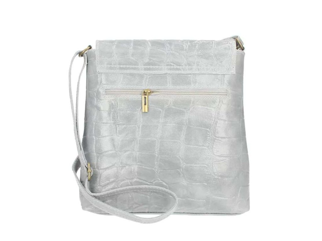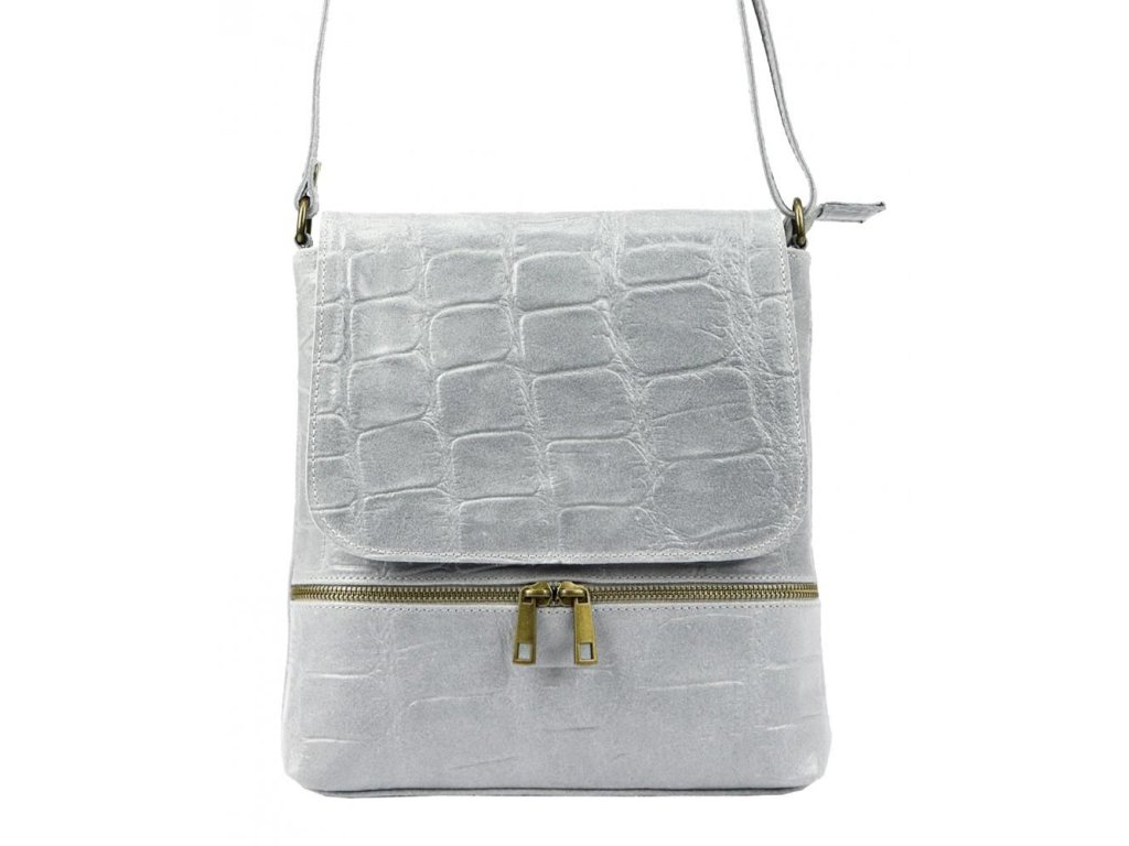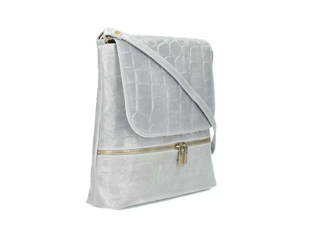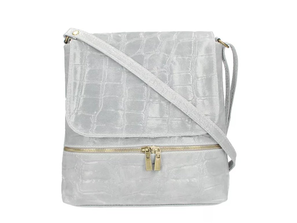 BORSE IN PELLE Kožená dámská crossbody kabelka v kroko designu světle šedá