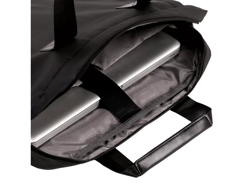 Taška na notebook VIREO je kombinací funkčnosti a moderního designu. Vyrobeno z voděodolného materiálu (85% polyester, 12% polyuretan, 3% akryl), zajišťuje odolnost a ochranu proti poškození a povětrnostním vlivům. Taška je navržena tak, aby se do ní vešly 15,6palcové notebooky a má další přihrádku s popruhem pro zajištění zařízení.