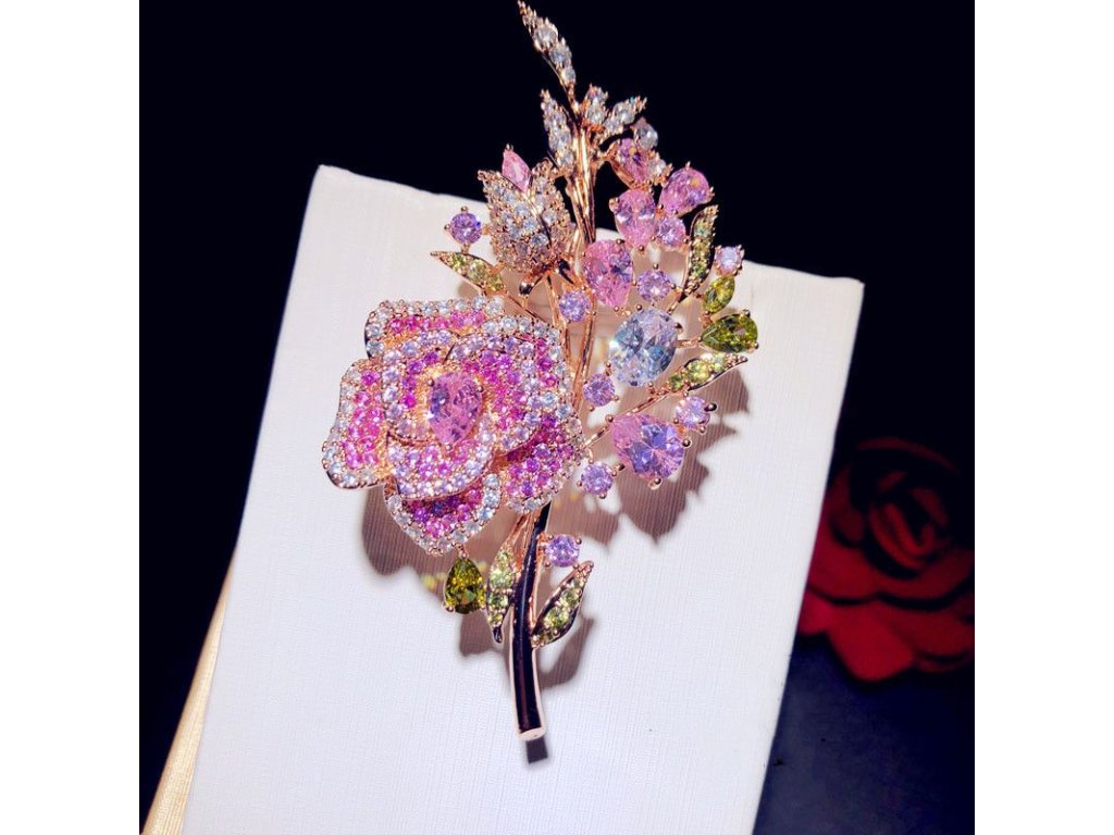 Brož růže pink