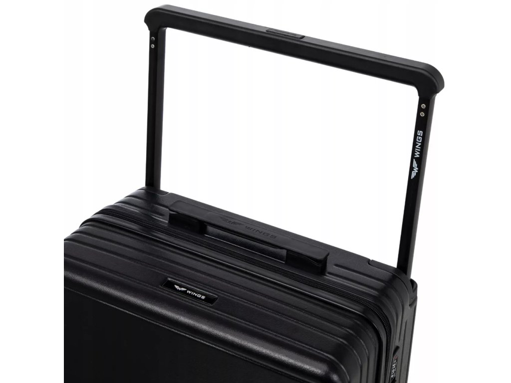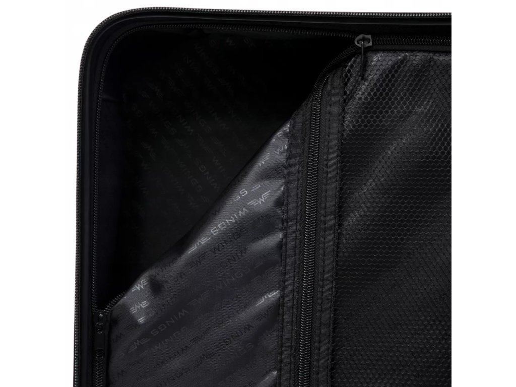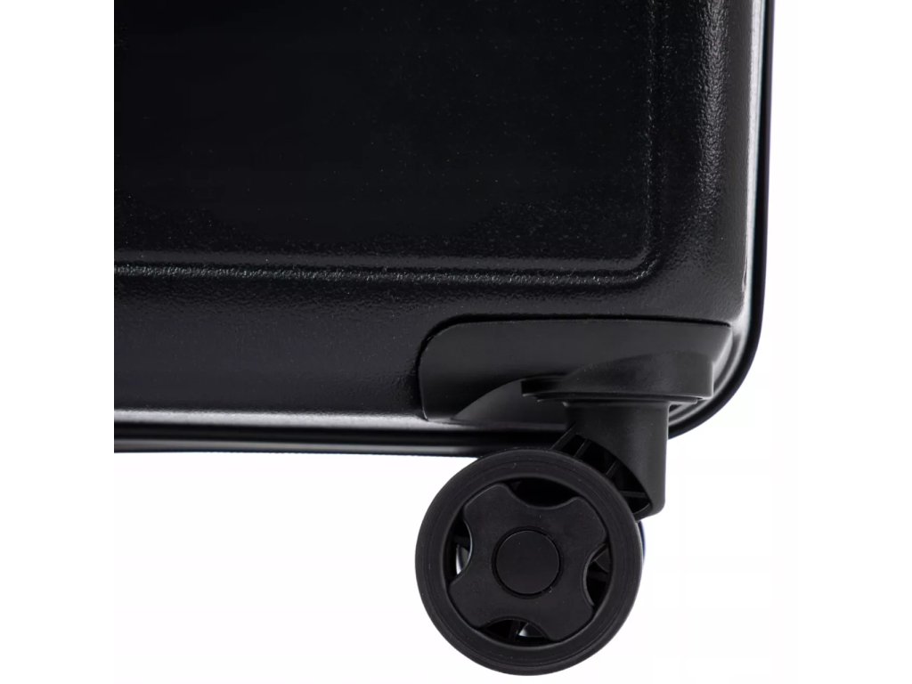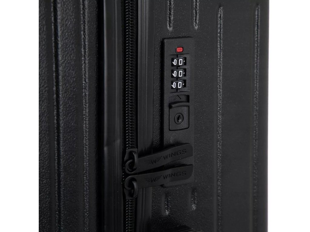 Oba jezdce zipu se dají zapojit do kódového zámku. Horní madlo je plastové. Celý pojízdný systém je umístěn uvnitř kufru pod textilní podšívkou, aby nedošlo k poškození systému při přepravě a je opatřen čtyřmi kolečky otočnými o 360°.