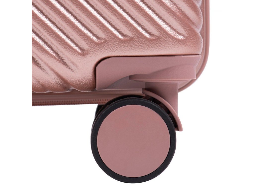 Oba jezdce zipu se dají zapojit do kódového zámku. Horní madlo je plastové. Celý pojízdný systém je umístěn uvnitř kufru pod textilní podšívkou, aby nedošlo k poškození systému při přepravě a je opatřen čtyřmi kolečky otočnými o 360°.