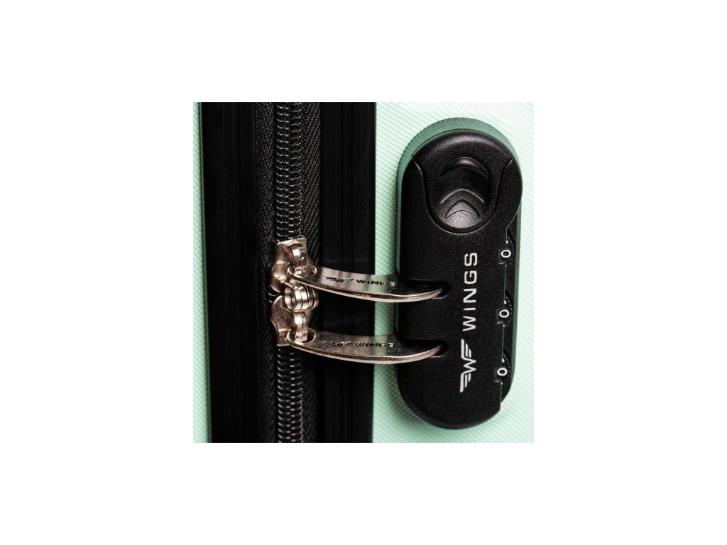 Oba jezdce zipu se dají zapojit do kódového zámku. Horní madlo je plastové. Celý pojízdný systém je umístěn uvnitř kufru pod textilní podšívkou, aby nedošlo k poškození systému při přepravě a je opatřen čtyřmi kolečky otočnými o 360°.