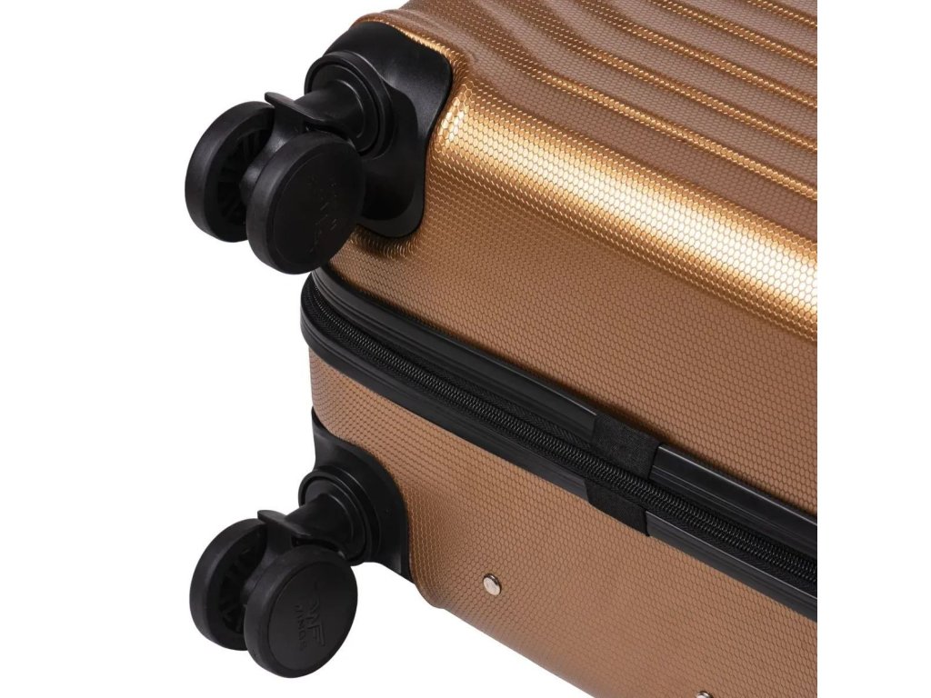 Oba jezdce zipu se dají zapojit do kódového zámku. Horní madlo je plastové. Celý pojízdný systém je umístěn uvnitř kufru pod textilní podšívkou, aby nedošlo k poškození systému při přepravě a je opatřen čtyřmi kolečky otočnými o 360°.