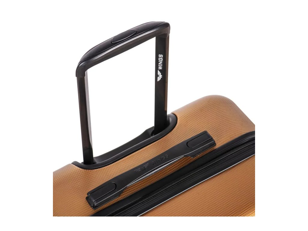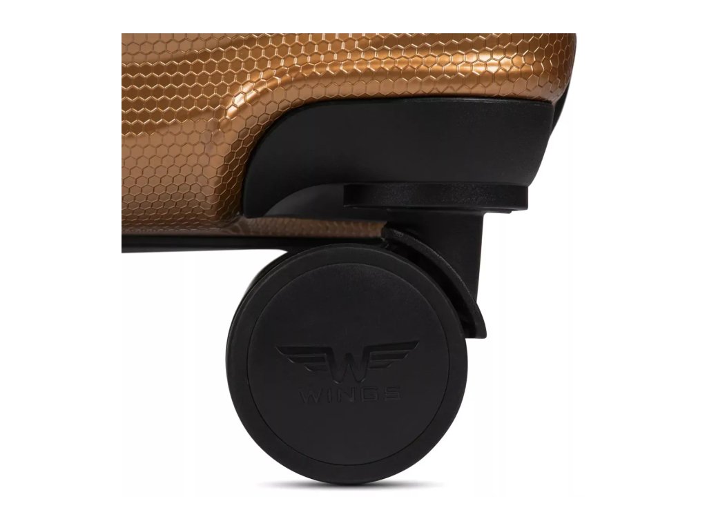 Oba jezdce zipu se dají zapojit do kódového zámku. Horní madlo je plastové. Celý pojízdný systém je umístěn uvnitř kufru pod textilní podšívkou, aby nedošlo k poškození systému při přepravě a je opatřen čtyřmi kolečky otočnými o 360°.