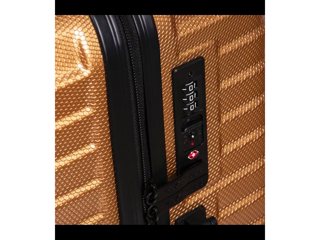 Moderní kufr z tvrdého a odlehčeného polykarbonátu, ustojí i případný tvrdý dopad na zem a vydrží i jinou velkou zátěž.