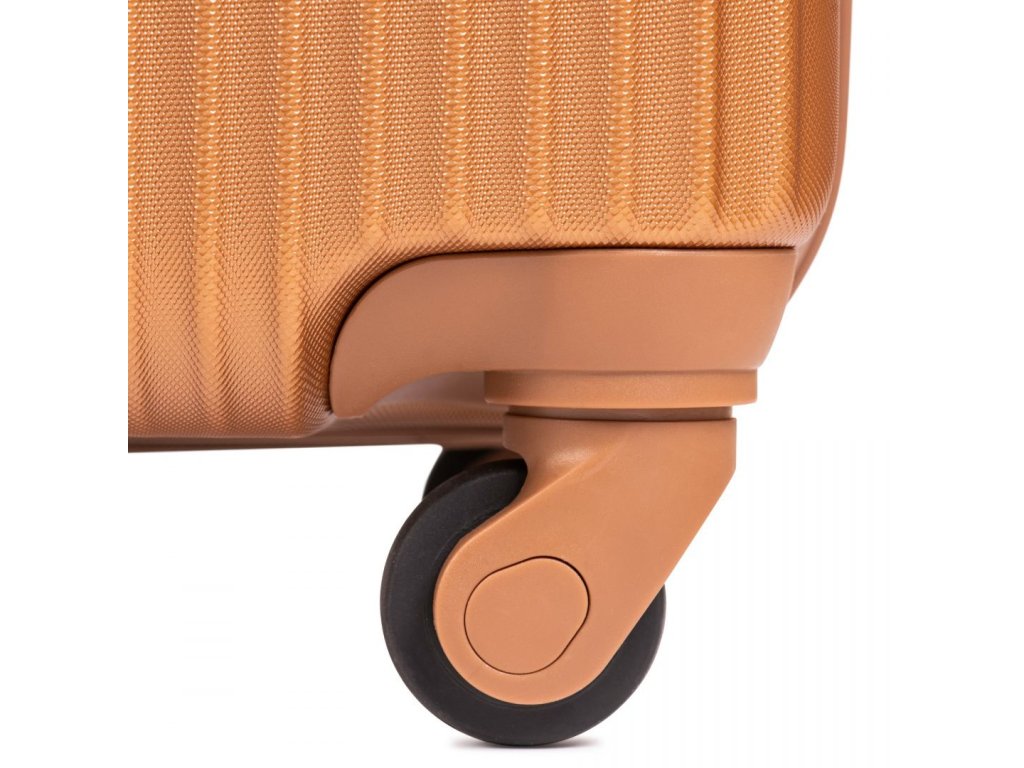 Moderní kufr z tvrdého a odlehčeného ABS (Akrylonitryl, Butadien, Styren) plastu, ustojí i případný tvrdý dopad na zem a vydrží i jinou velkou zátěž.