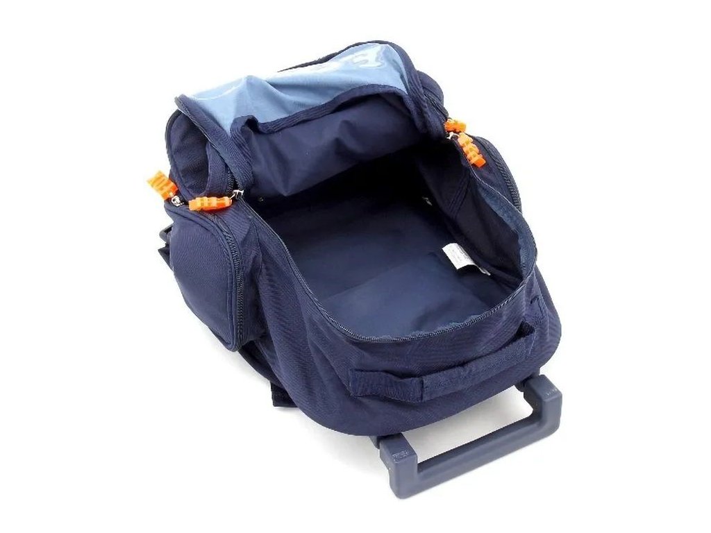 - Batoh je opatřen vozítkem, které má na spodní straně plastová kolečka.