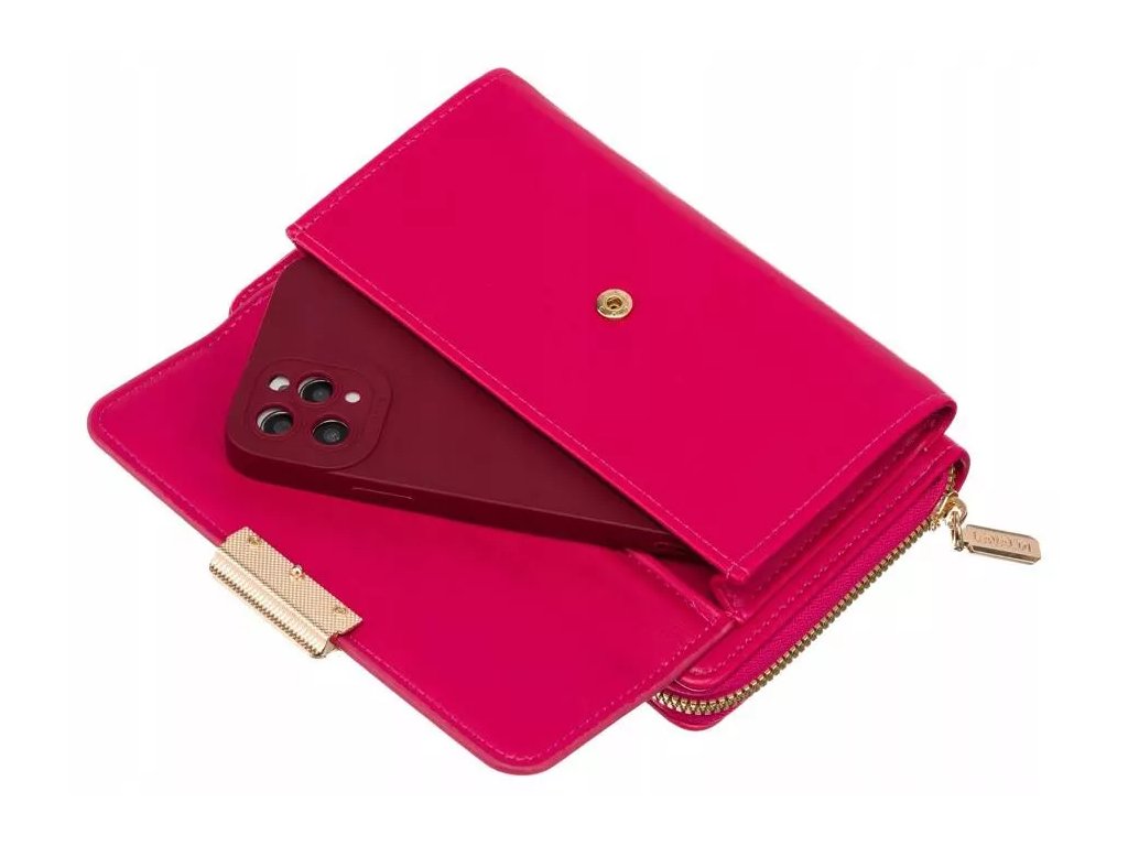 - Kapsa na telefon | Na přední straně kabelky-peněženky je mimořádně užitečná kapsa na telefon se zapínáním na patentky;