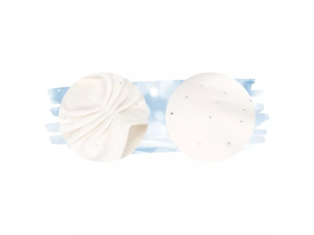 Jeho jednotná, klasická barva byla jemně oživena decentními dekoracemi – složitě uspořádanými krystaly, které se třpytí ve světle, dodávají klobouku vznešený lesk a kouzlo a vytvářejí efekt plný decentní elegance.