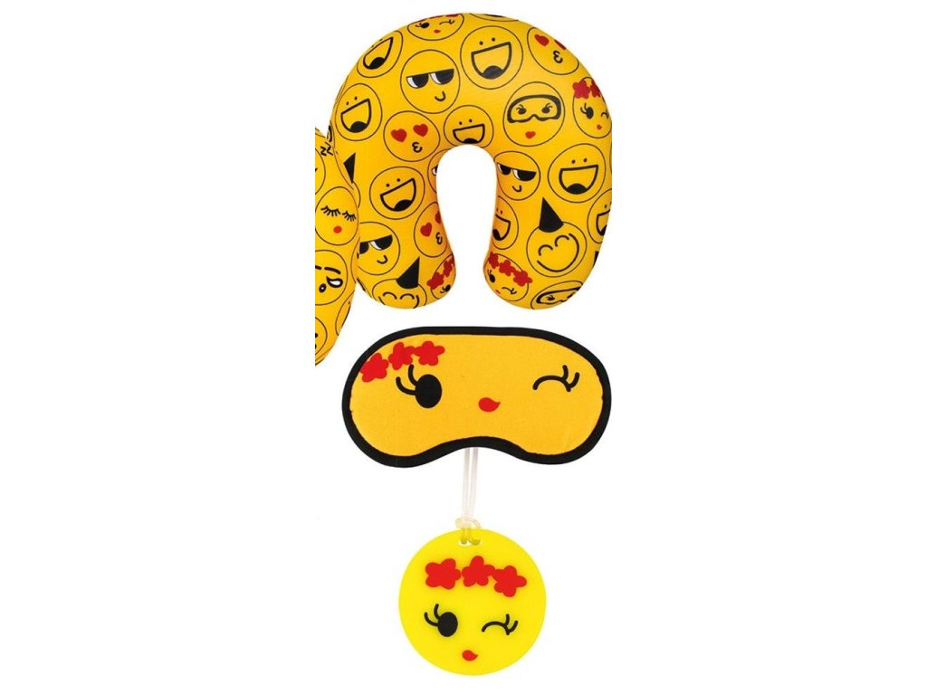 Cestovní sada skládající se z polštáře na krk, masky na spaní a jmenovky na zavazadlo.