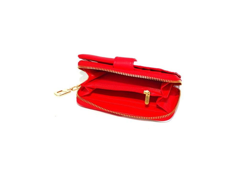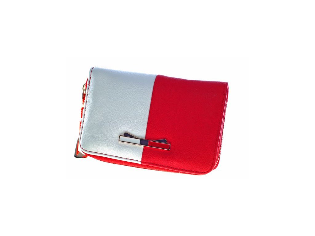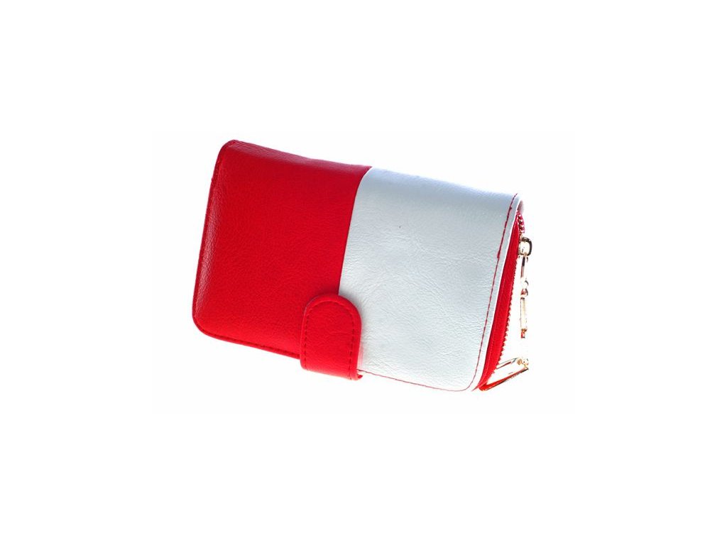 Dámská dvoukomorova peněženka, první komora přihrádka na bankovky, kapsa na mince s uzavřením na zip. Druha komora kapsa na doklady, organizér na platební karty, uzavření na patent.