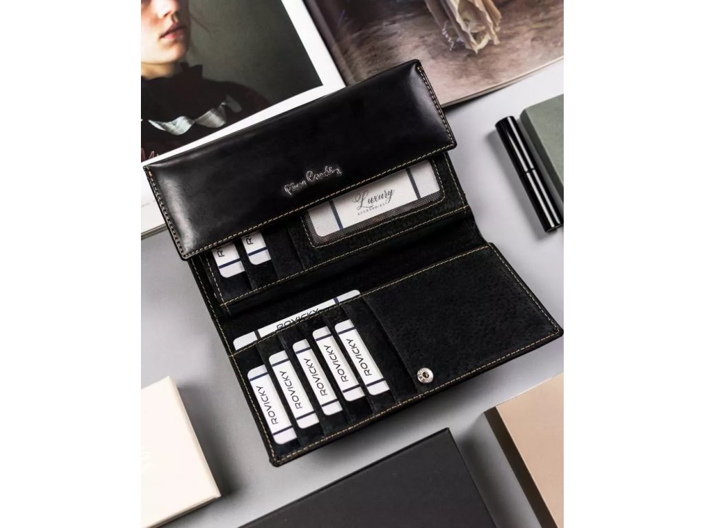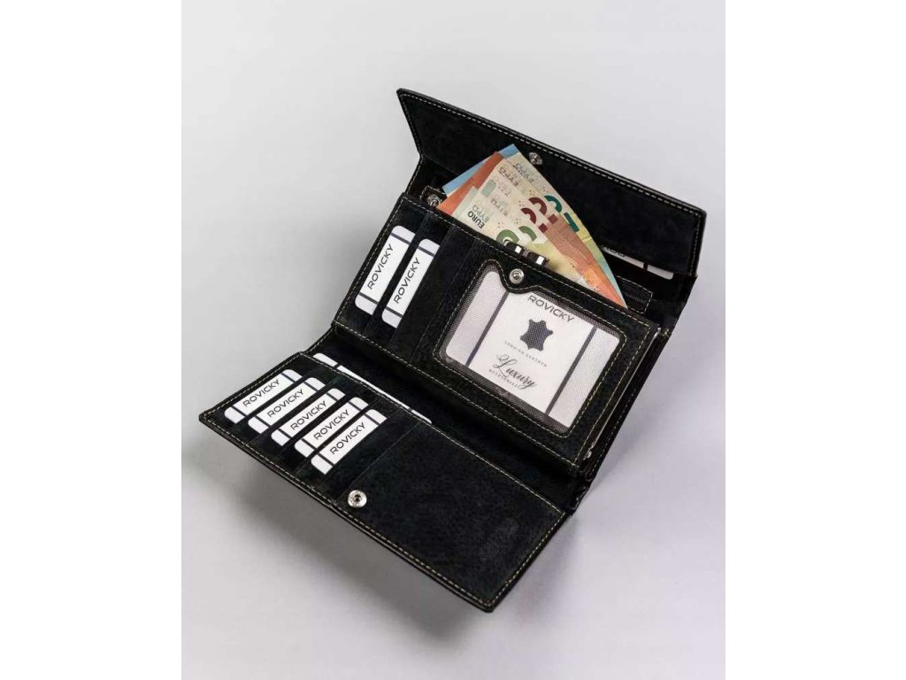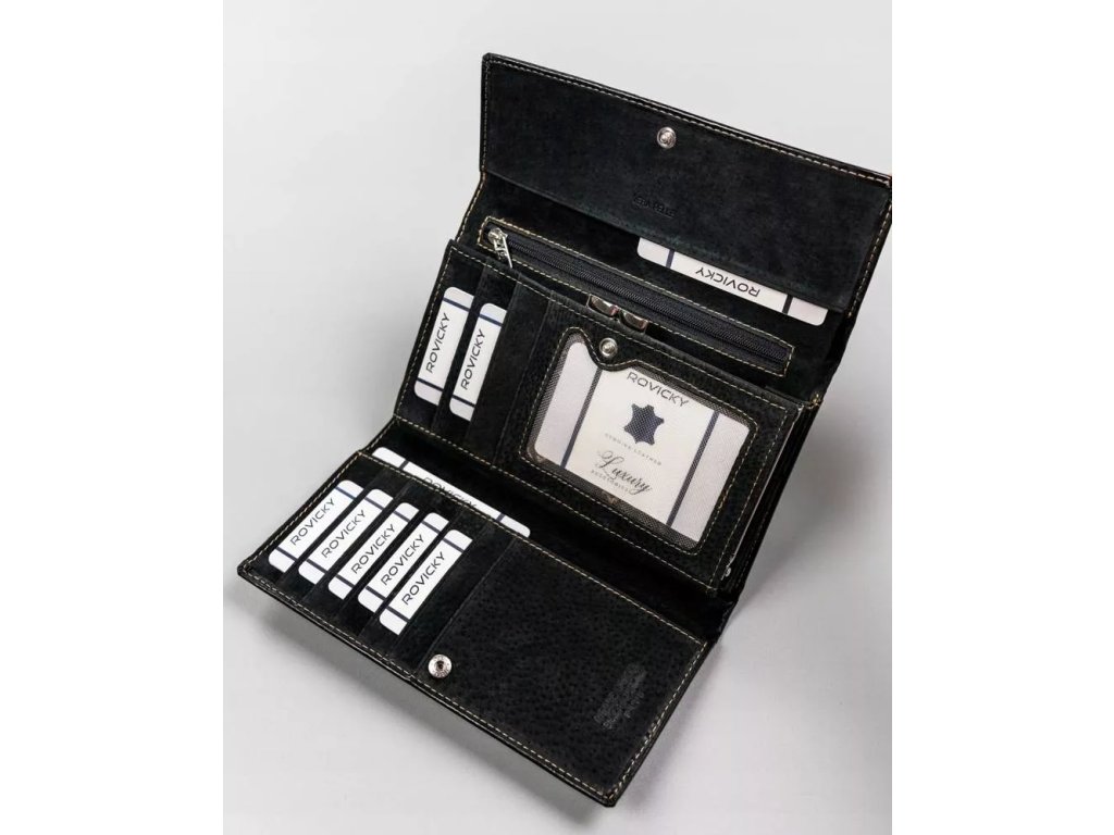 - Vyrobeno z přírodní kůže. Peněženka je velmi prostorná - má 9 přihrádek na karty a 1 místo na doklady včetně větších.