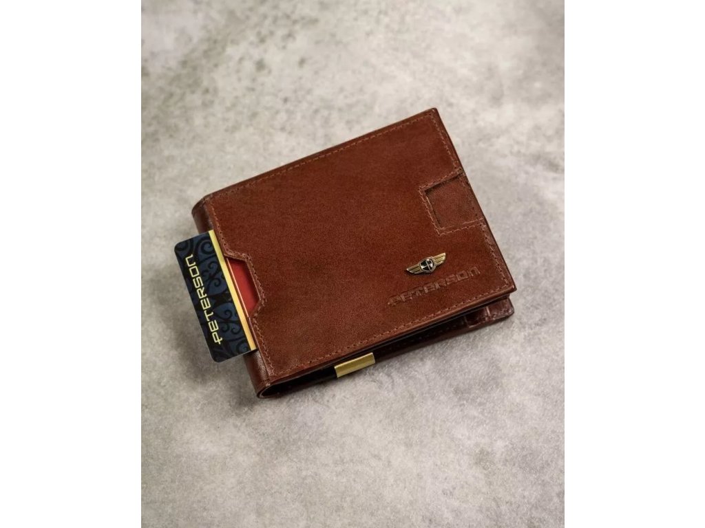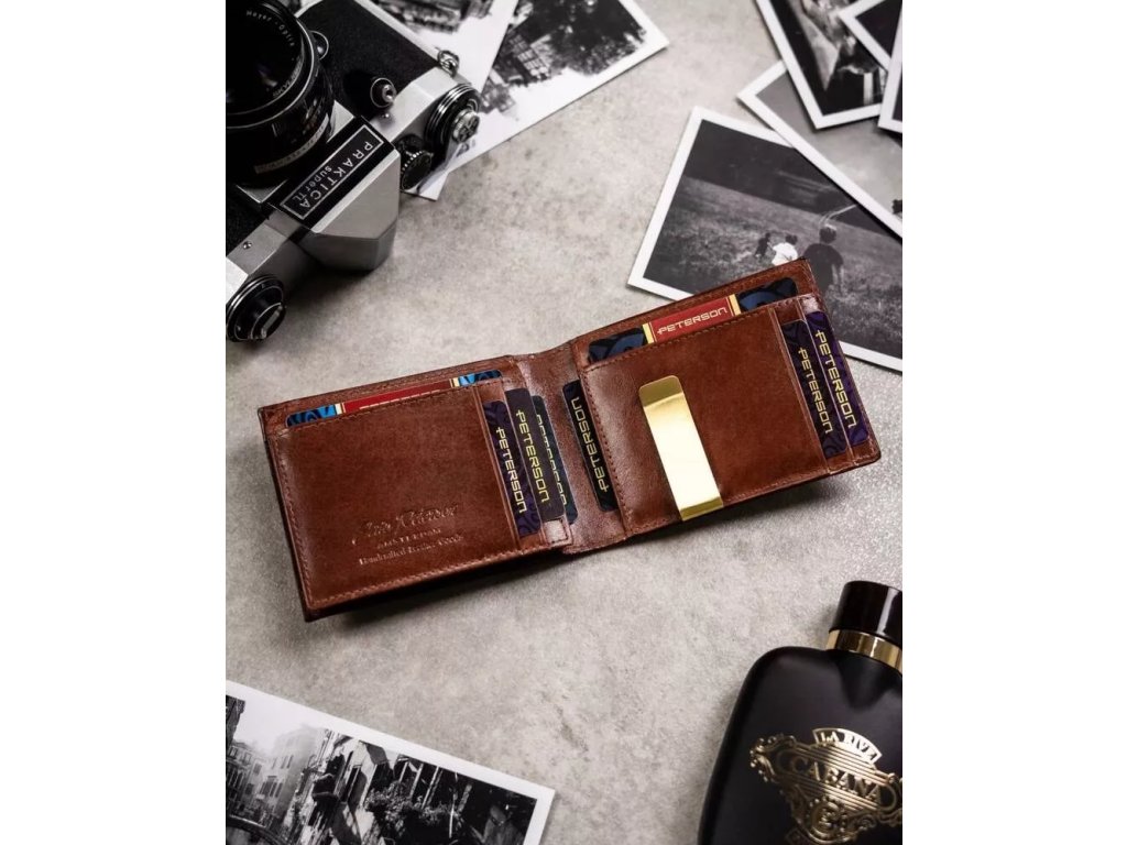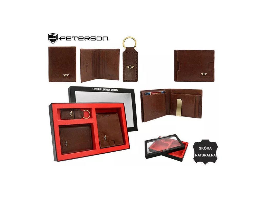 Dárková sada: kožená peněženka, pouzdro a klíčenka PETERSON PTN SET3-N78-VT BROWN