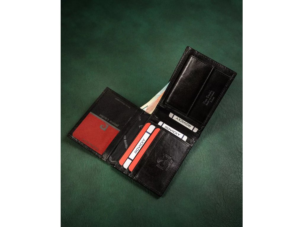 Peněženka vyrobená z vysoce kvalitní přírodní kůže . Model klasického designu v horizontální orientaci bez vnějšího zapínání. Přední stranu zdobí stylové logo značky. Středně velká peněženka s výbornou vnitřní organizací. Interiér je vybaven řadou praktických přihrádek. Vejde se vám do nich velké množství karet, dokladů a hotovosti.