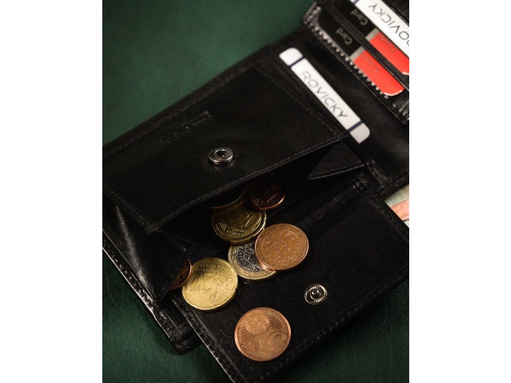 - své mince můžete vložit do 1 kapsy zapínané na patentku. Pohodlně z něj vyndáte drobné;