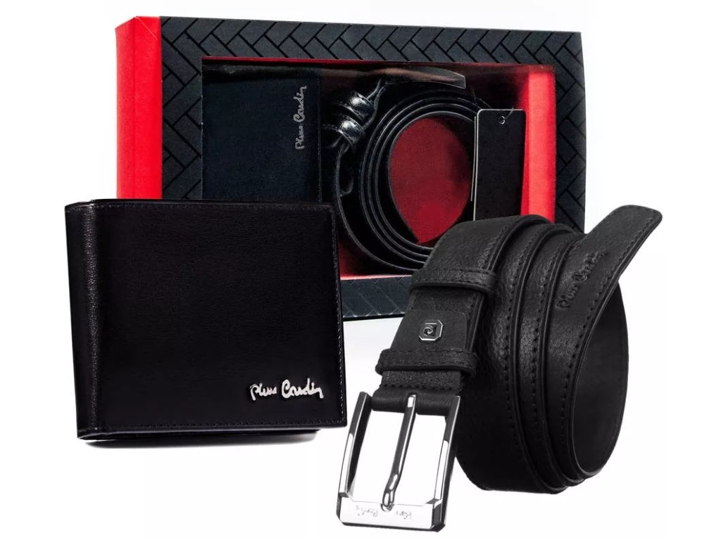 Dárková sada z pravé kůže: peněženka a opasek s tradiční sponou - Pierre Cardin® ZM-PC7