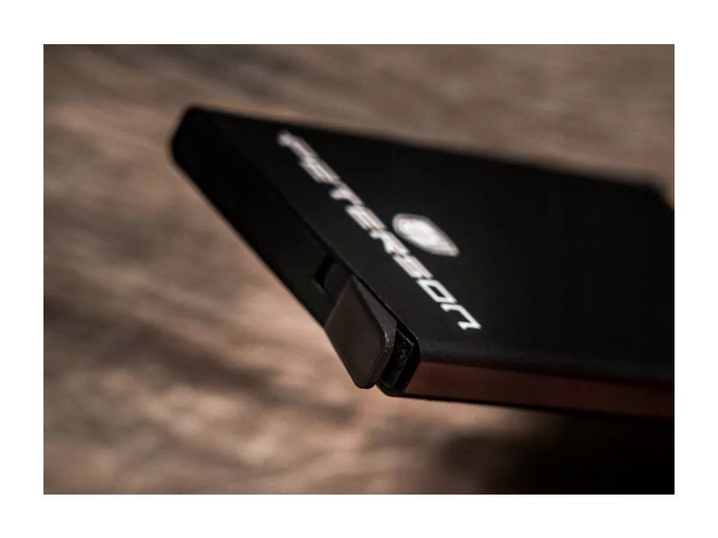 - Hliníkové pouzdro na karty | Pouzdro je vyrobeno z lehkého, ale pevného hliníku a pojme až 7 karet v závislosti na jejich tloušťce;
