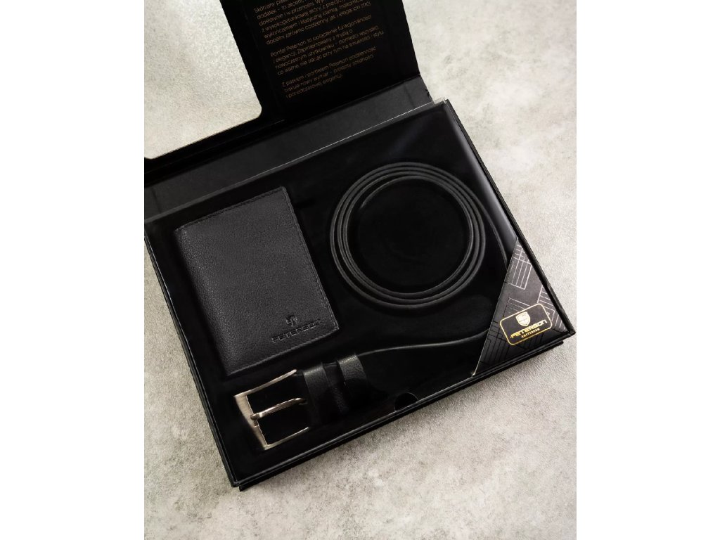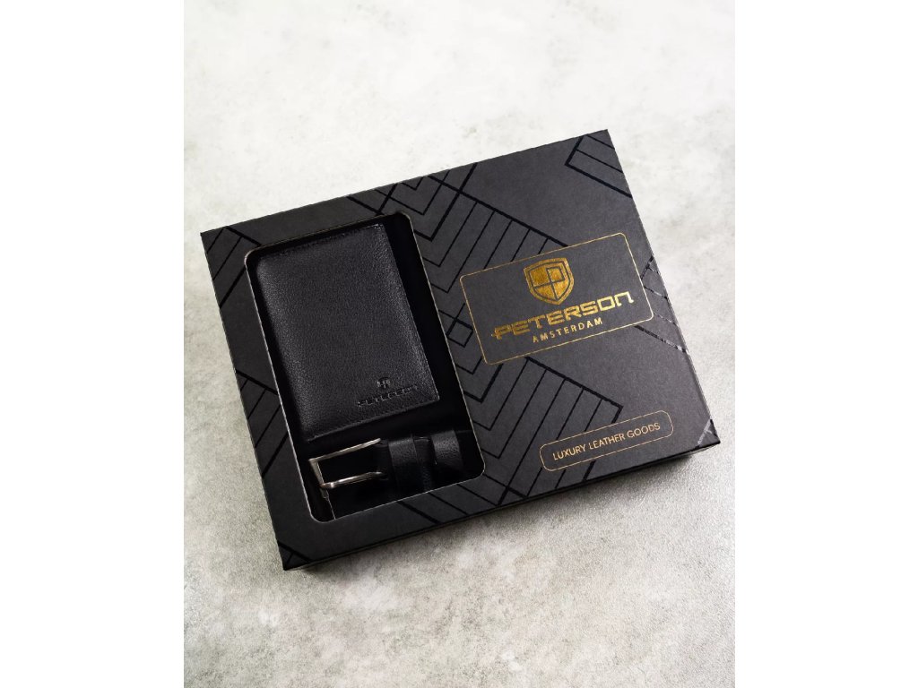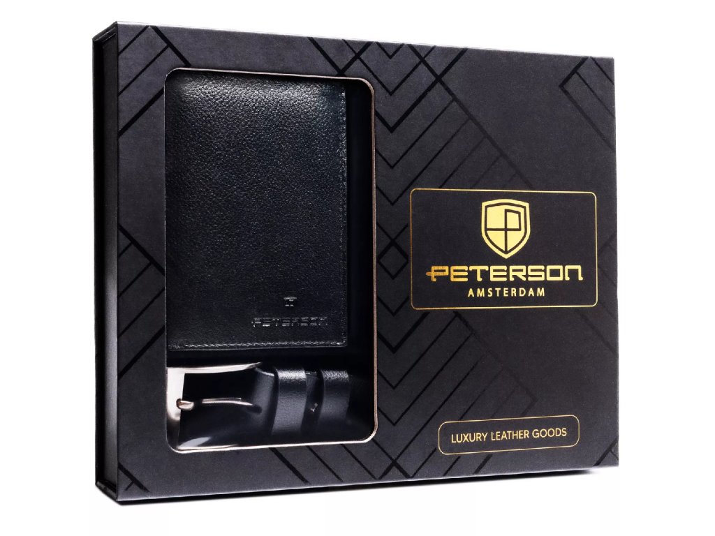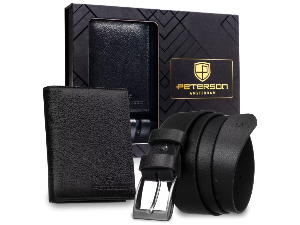 Pánská dárková sada: peněženka a opasek Peterson® PTN N4-SPDM-125-BW-7015 BLACK