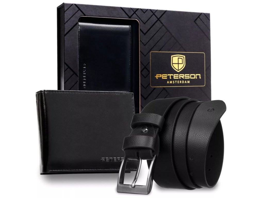 Pánská dárková sada: peněženka a opasek Peterson® PTN N992-NGV-115-BW-7084 BLACK