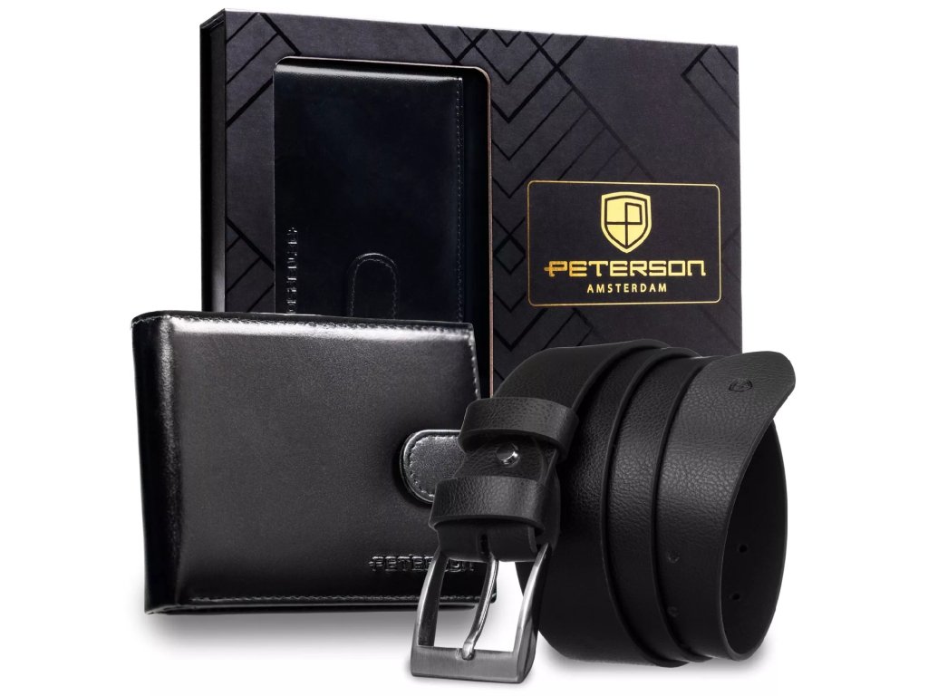 Pánská dárková sada: peněženka a opasek Peterson® PTN N992L-NGV-115-BW-7077 BLACK