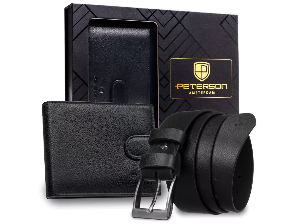 Pánská dárková sada: peněženka a opasek Peterson® PTN N992L-SPDM-115-BW-7039 BLACK