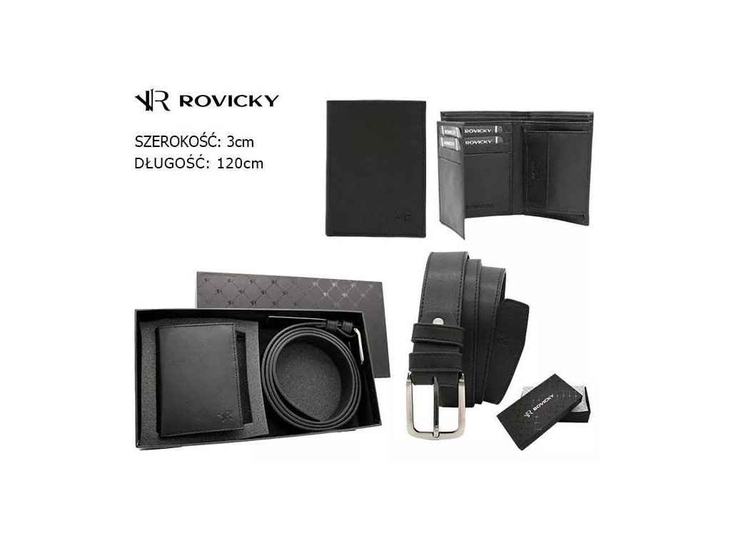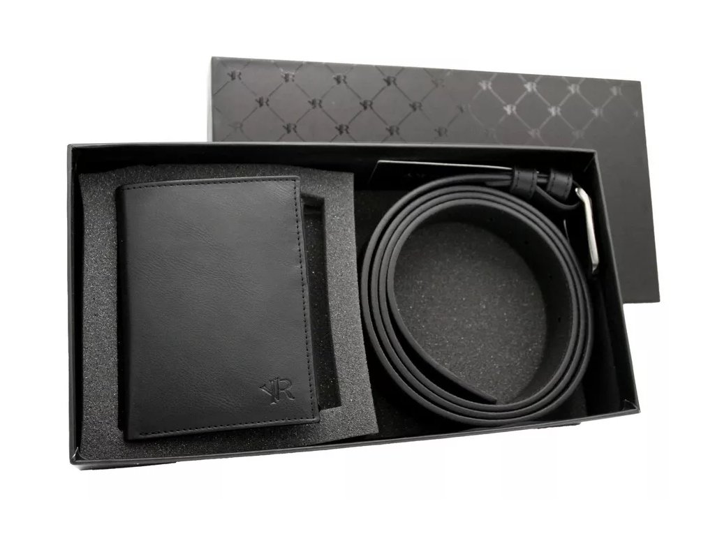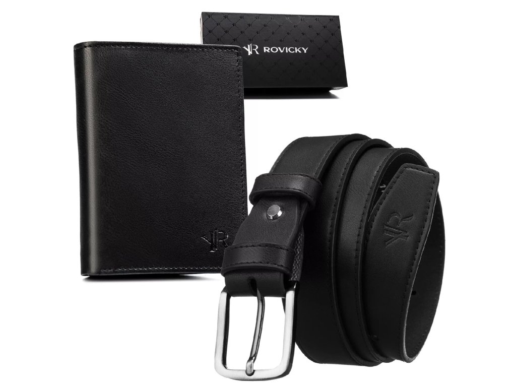 Dvoudílná pánská dárková sada: Rovicky kožený opasek a peněženka R-N004-120-PU03 BLACK