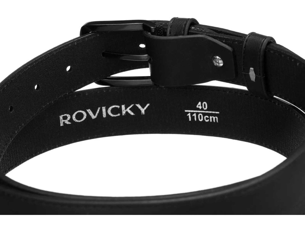 Pásek Rovicky je ztělesněním stylu. Je vyroben z černé ekokůže a zaujme svým jemným leskem a robustní kovovou sponou. Je všestranný, takže se perfektně hodí jak k formálním oblekům, tak k ležérním outfitům.