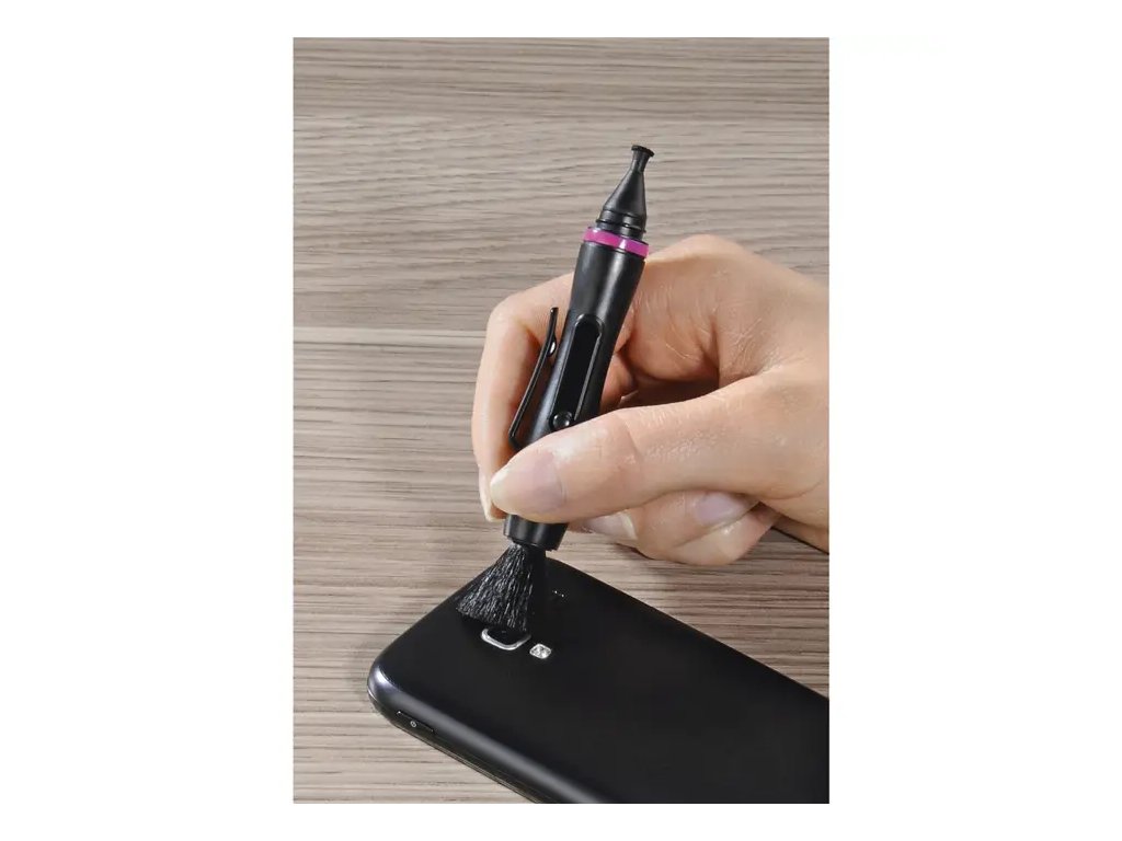 1. Pomocí posuvného tlačítka vysuňte štětec. Pomocí štětce odstraňte větší částečky nečistot.
