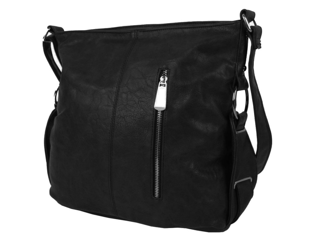 Střední až větší dámská kabelka přes tělo od výrobce Mahel zaujme svislou zipovou kapsou, umístěnou na přední části.
