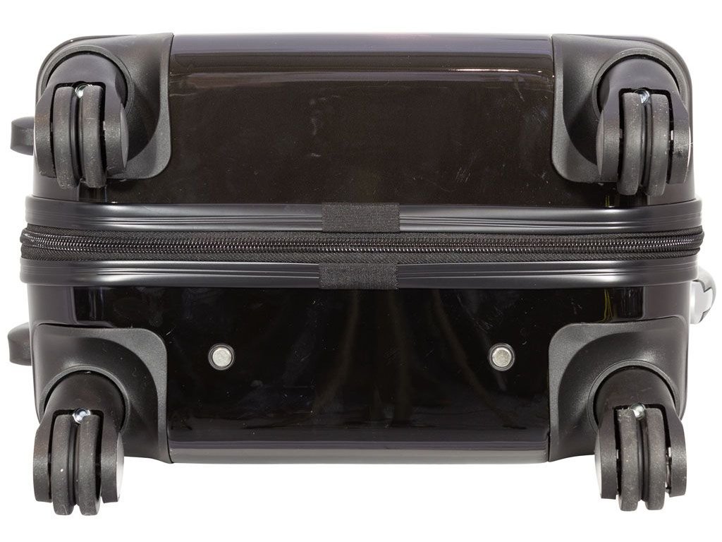 Oba jezdce zipu se dají zapojit do kódového zámku. Horní madlo je plastové. Celý pojízdný systém je umístěn uvnitř kufru pod textilní podšívkou, aby nedošlo k poškození systému při přepravě a je opatřen čtyřmi kolečky otočnými o 360°.
