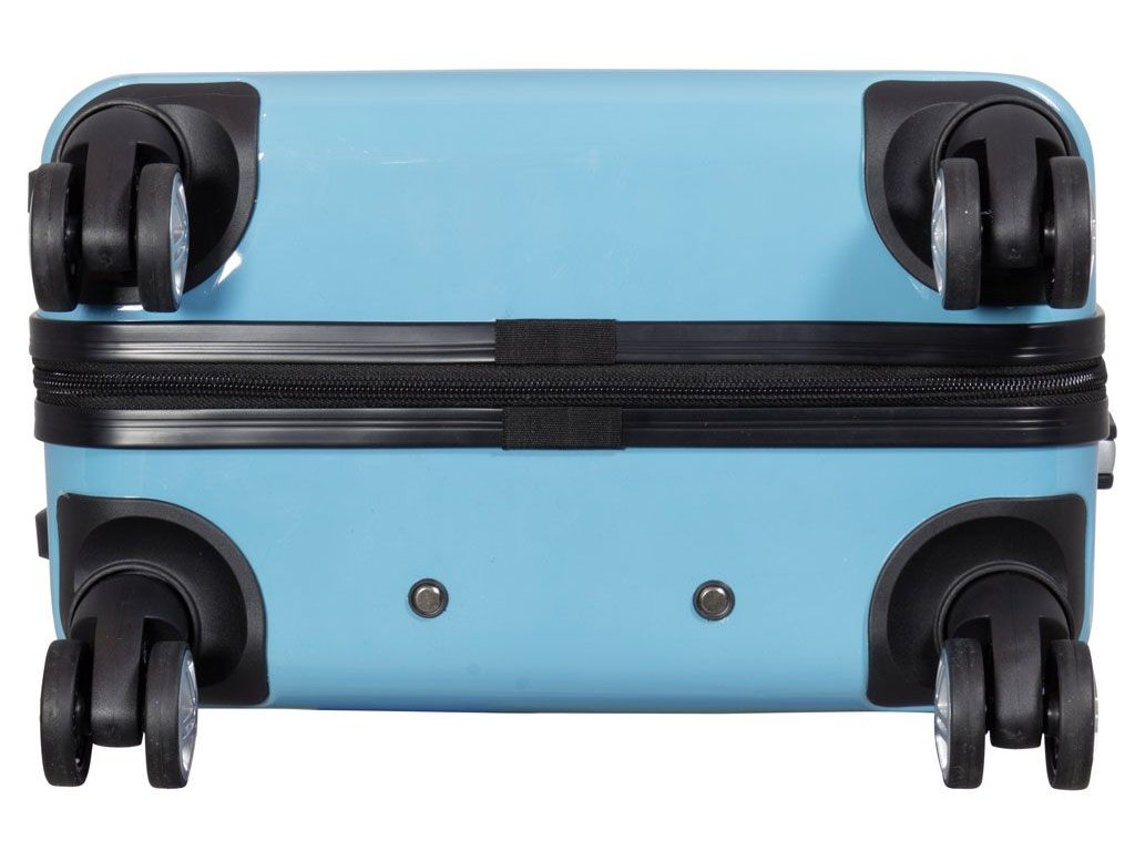 Oba jezdce zipu se dají zapojit do kódového zámku. Horní madlo je plastové. Celý pojízdný systém je umístěn uvnitř kufru pod textilní podšívkou, aby nedošlo k poškození systému při přepravě a je opatřen čtyřmi kolečky otočnými o 360°.